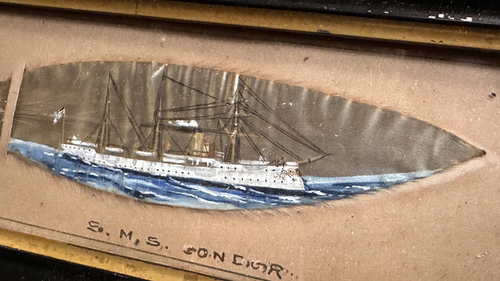 Imperial German Navy Sailor Folk Art on Feather, SMS Condor