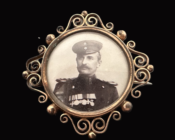 Imperial German Officer Portrait Brooch – Gilded Filigree Setting