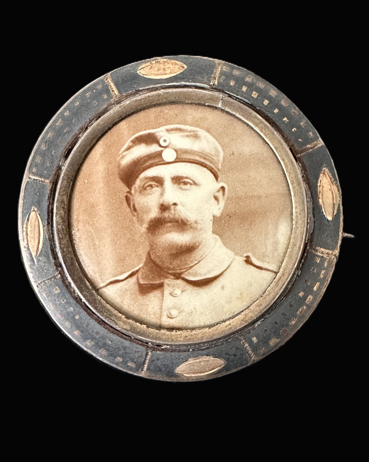 This piece likely served as a keepsake or mourning brooch, a common practice during and after World War I, allowing loved ones to keep a tangible connection to a soldier in service or fallen in battle. The craftsmanship suggests it was produced for a family of means, as portrait jewelry was a cherished and often costly endeavor.