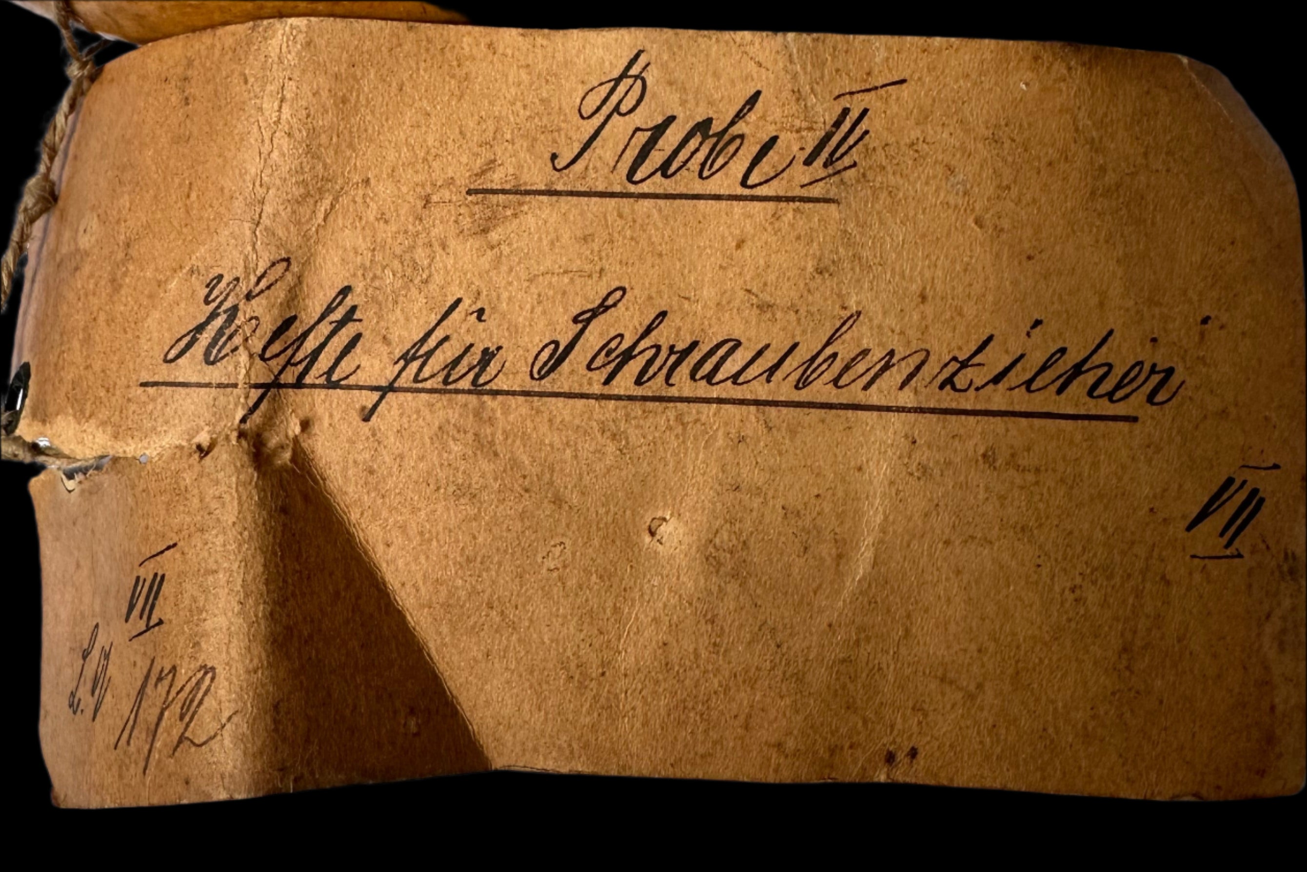 From a private European collection of Kaiserliche Marine workshop materials. The authenticity of the wax seal, handwriting, and tag construction is consistent with government-issued sample handling standards circa 1910–1914.
