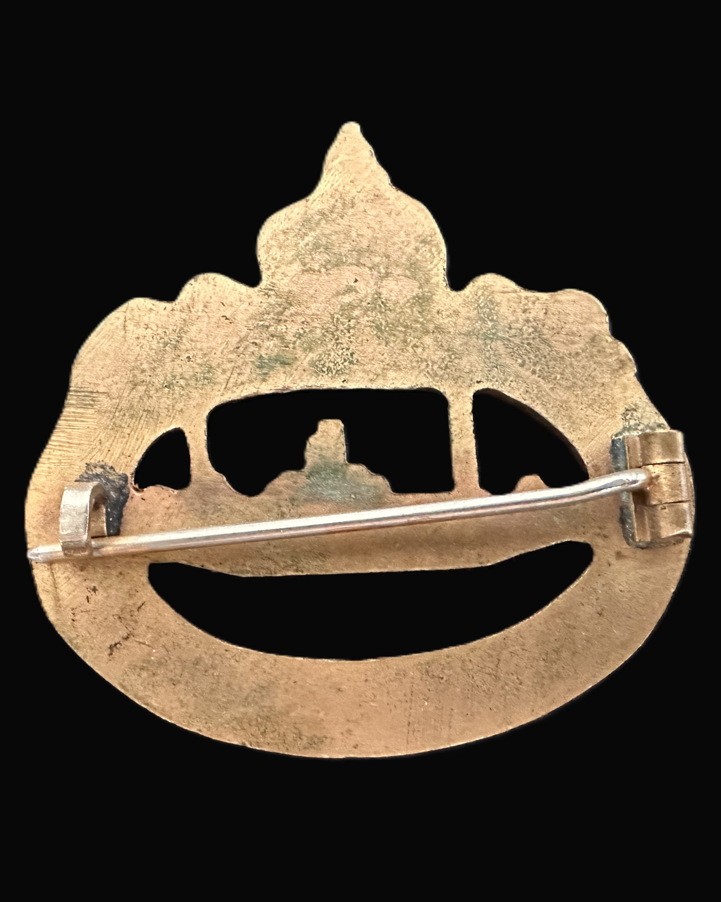 - The reverse features a pin-back fastening, consisting of a period-correct hinge and catch, indicative of wartime production.