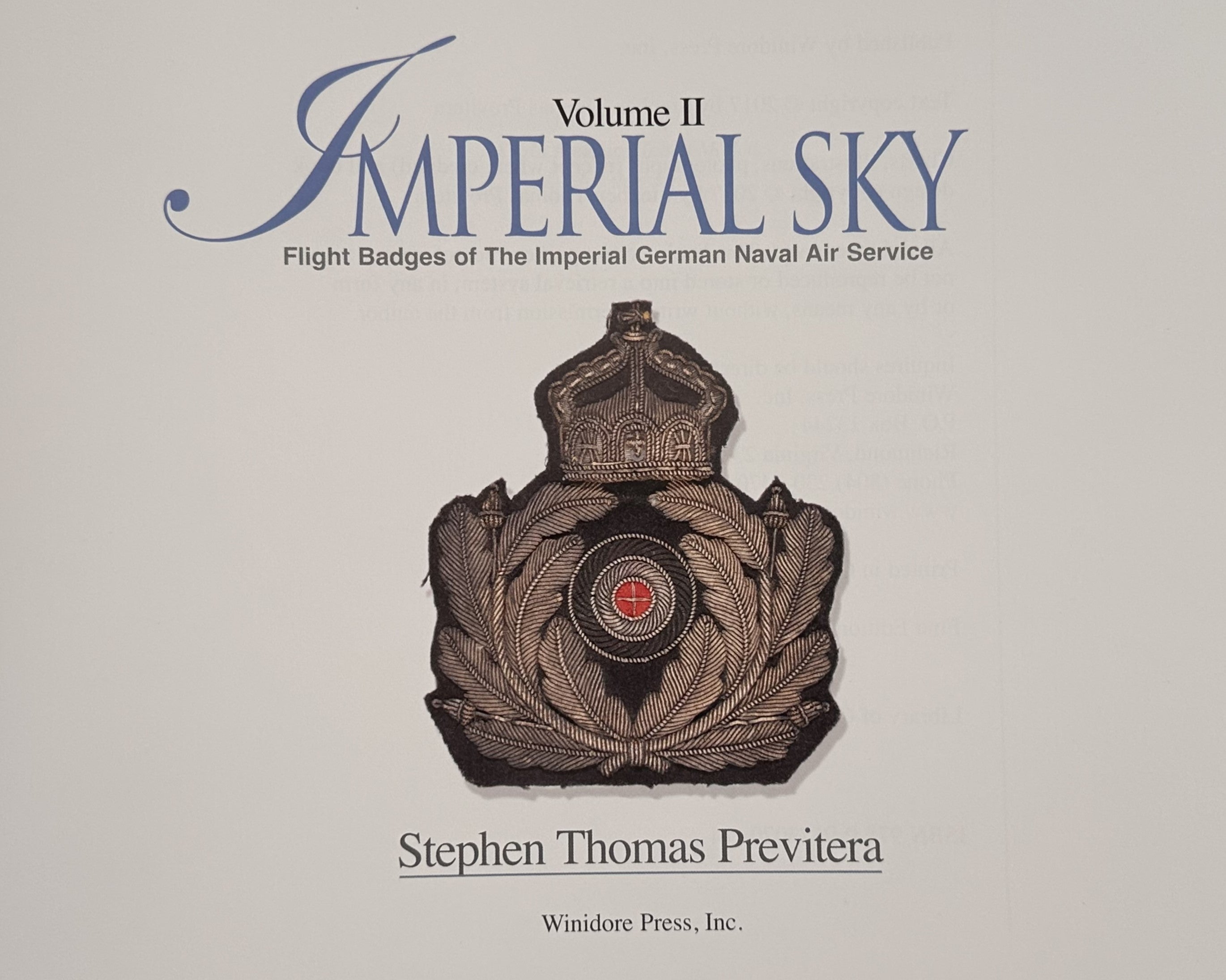 A richly illustrated and thoroughly researched book, Imperial Sky: Flight Badges of The Imperial German Naval Air Service by Stephen Thomas Previtera delves into the fascinating history of Imperial Germany's naval aviation during World War I. This is Volume II of the acclaimed series and provides detailed insights into the development, symbolism, and manufacture of the flight badges awarded to the elite aviators of the Kaiserliche Marine.