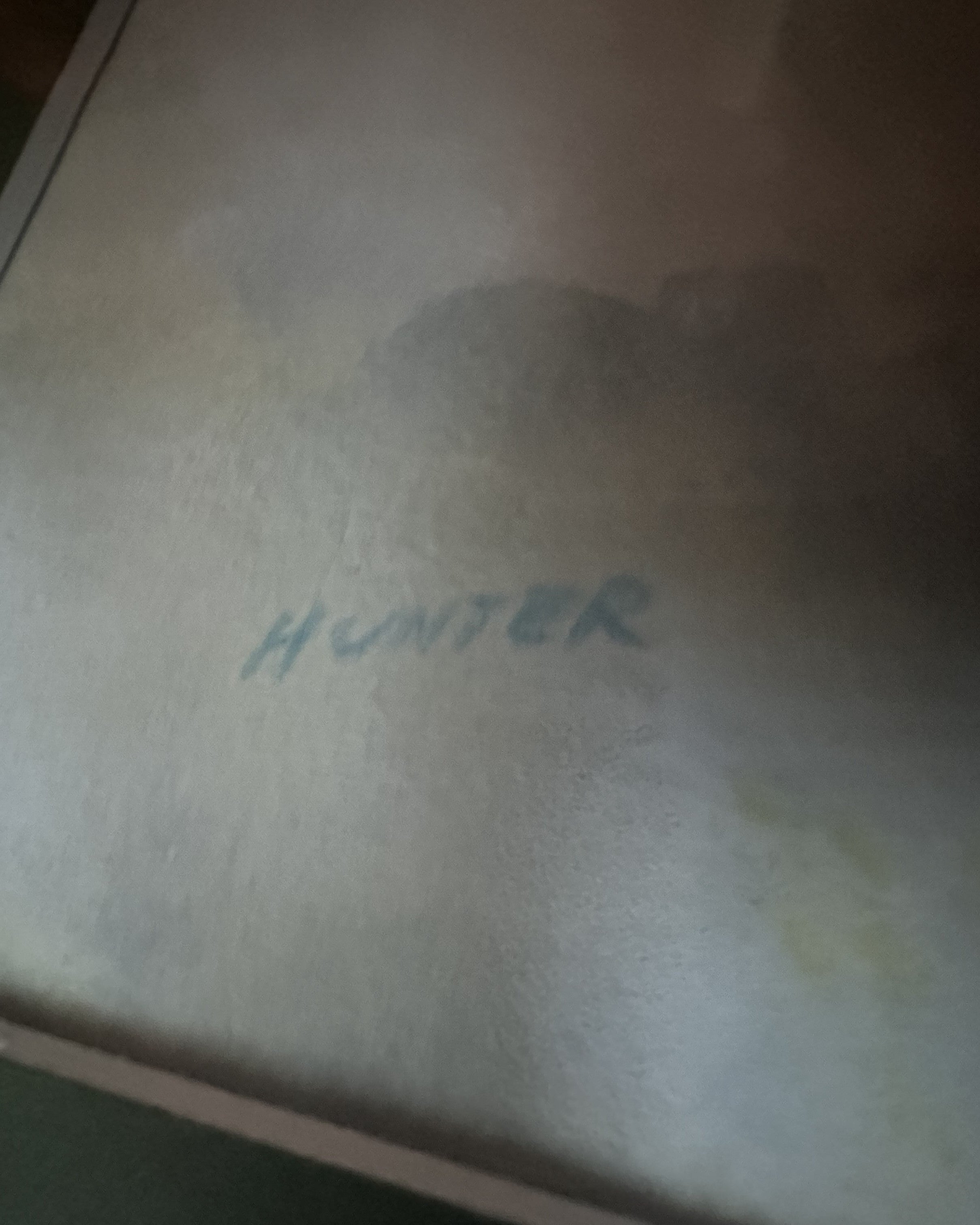 Condition: Excellent with vibrant colors; frame shows minor wear; verso retains Hunter’s signed explanatory note and framer’s label (Wenfield Frame, Peabody, MA).