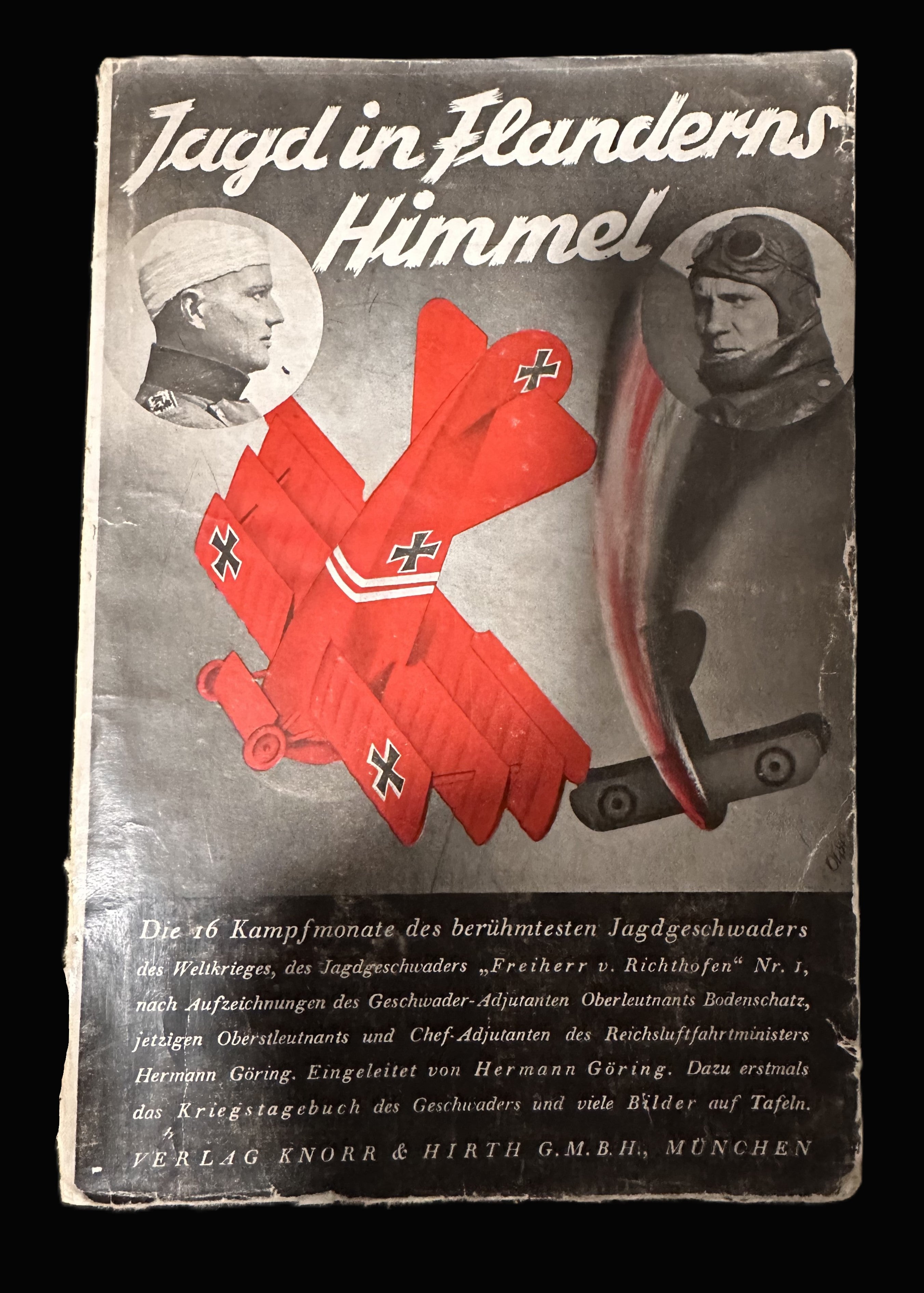 This original German-language edition of Jagd in Flanderns Himmel (“Hunting in the Skies over Flanders”) offers a vivid account of the 16 most intense months of World War I service by Jagdgeschwader Freiherr von Richthofen Nr. 1—known more famously as “The Flying Circus.” Compiled from the unit’s wartime records and the personal notes of its adjutants, including Oberleutnant Bodenschatz, this volume traces the meteoric rise of Germany’s most renowned air unit under the legendary Red Baron, Manfred von Richthofen.