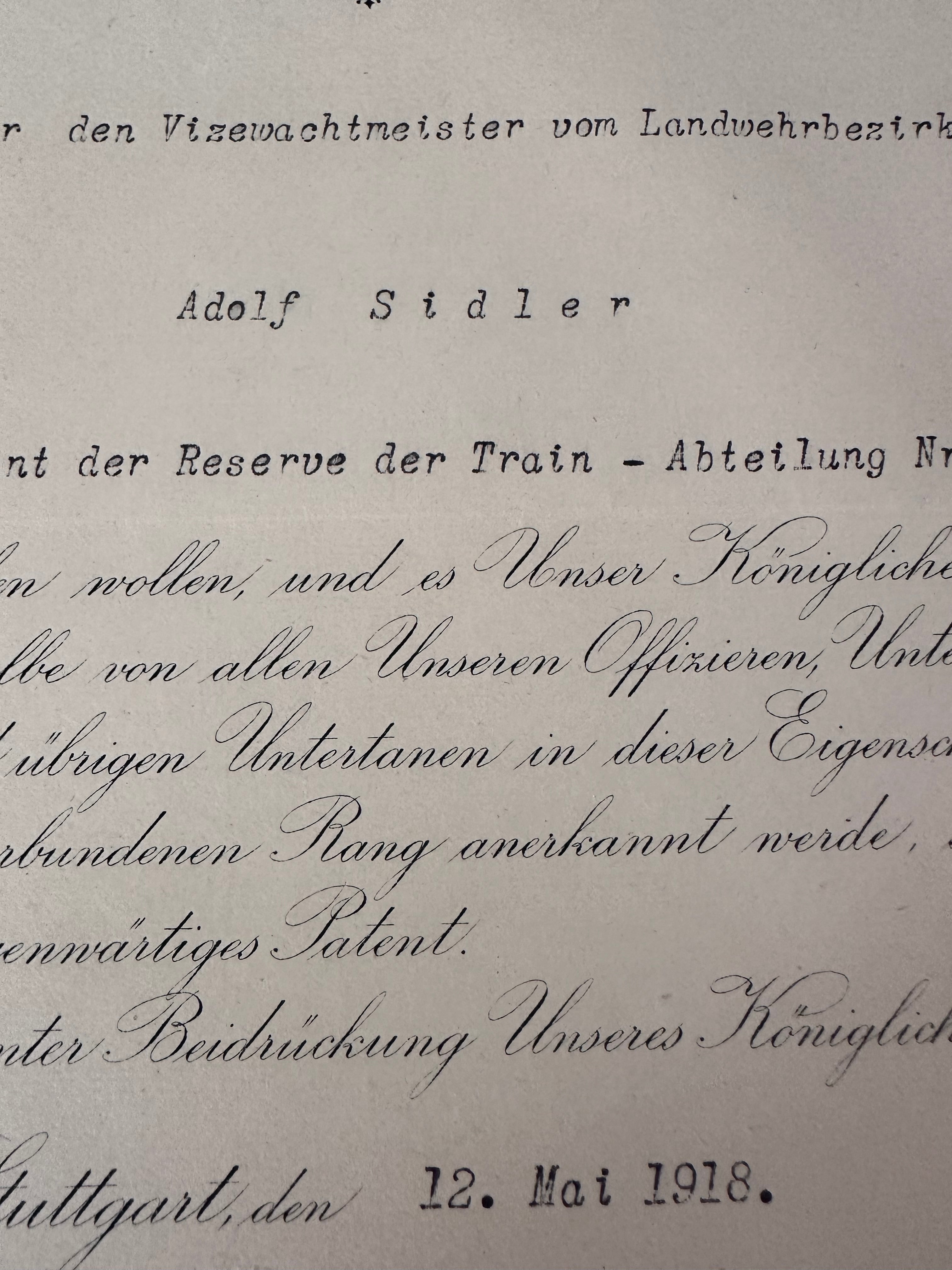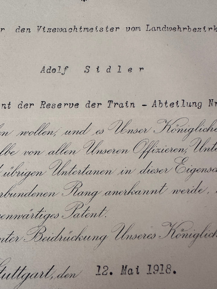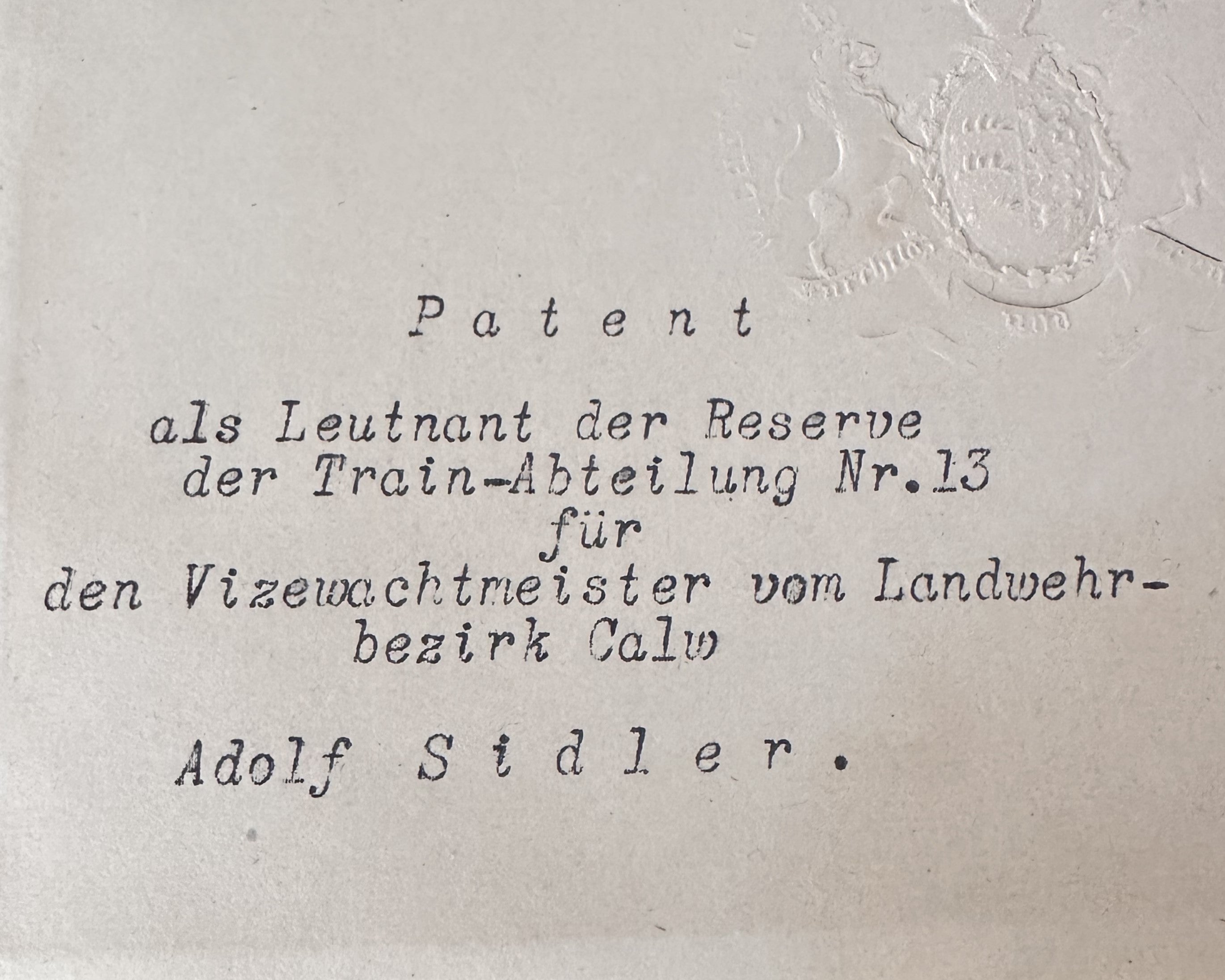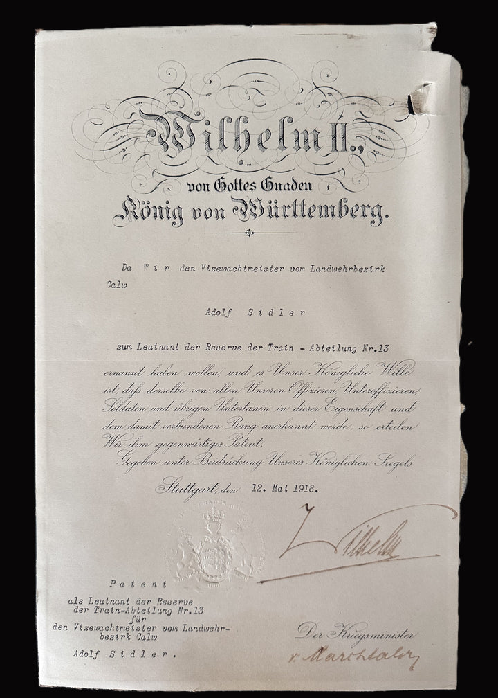As we wish to appoint Vizewachtmeister Adolf Sidler from the Landwehr District of Calw