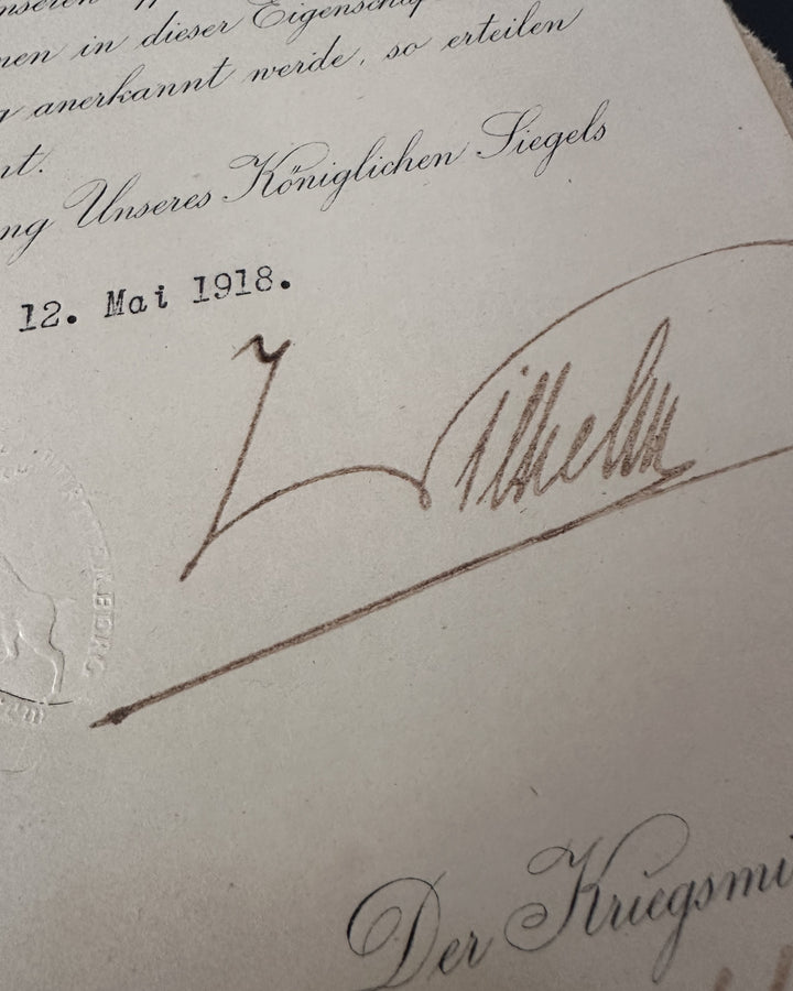King Wilhelm II of Württemberg remained a figurehead until the German monarchy was abolished in 1918, making this a late-war document of great historical significance.