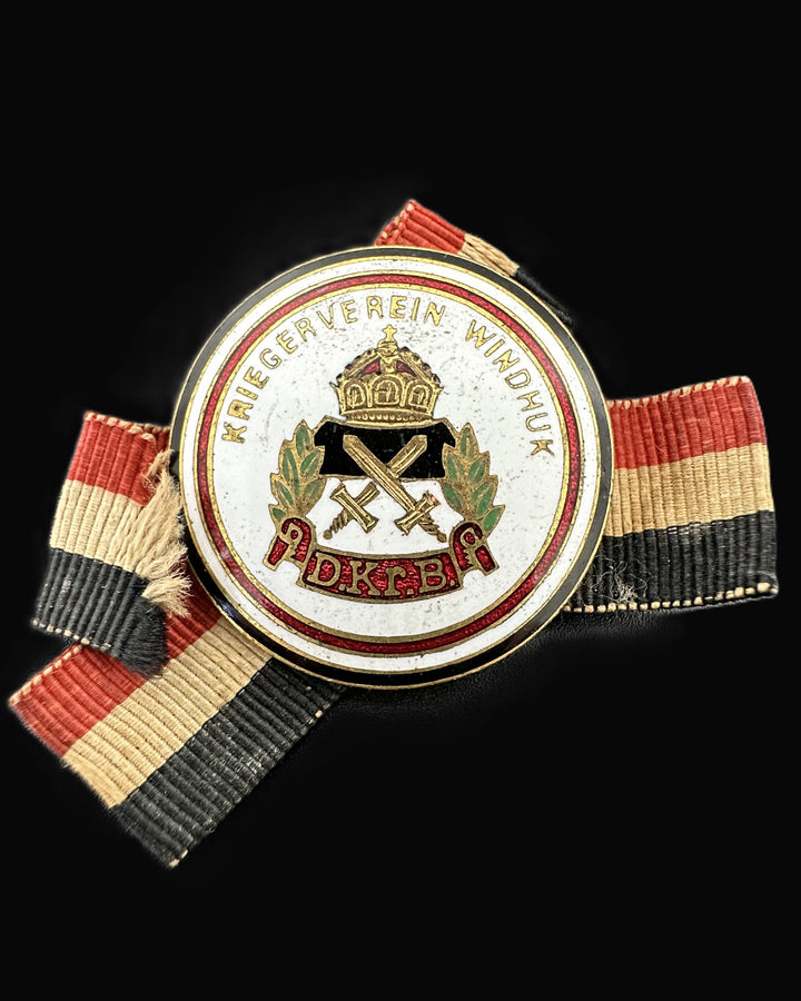 The Kriegerverein Windhuk badge is a rare artifact from Germany's colonial era. Windhuk was a key settlement in German South-West Africa, a colony established in 1884 and administered until 1915. This badge commemorates the German veterans who served in Africa and were members of the Windhuk association.