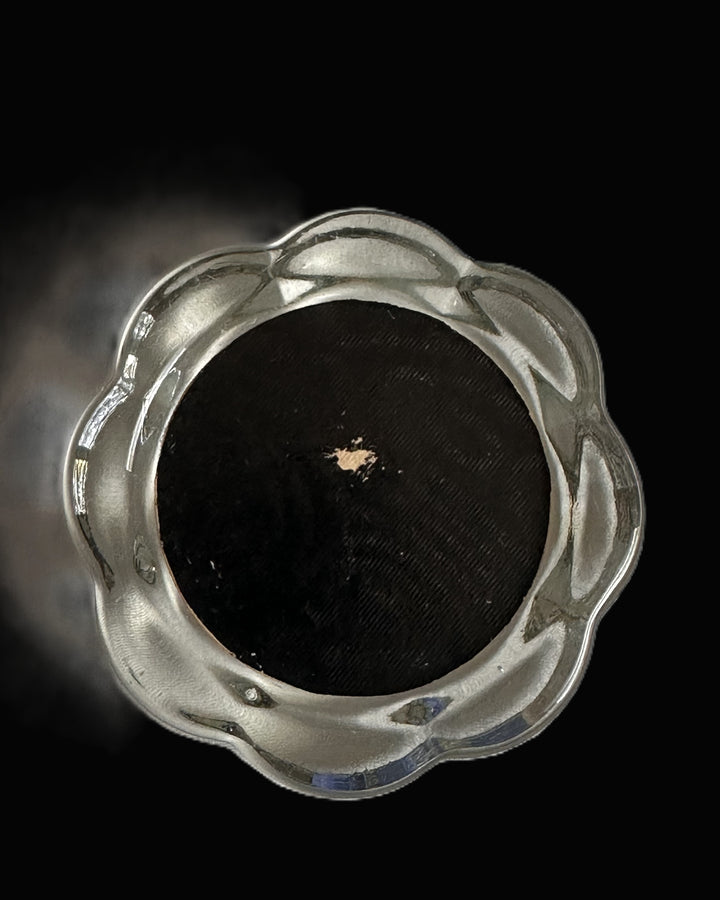 Condition: Very Good. The glass remains clear and undamaged with only minor surface wear and faint age toning to the image insert. The black paper backing shows light abrasion at center but is largely intact.