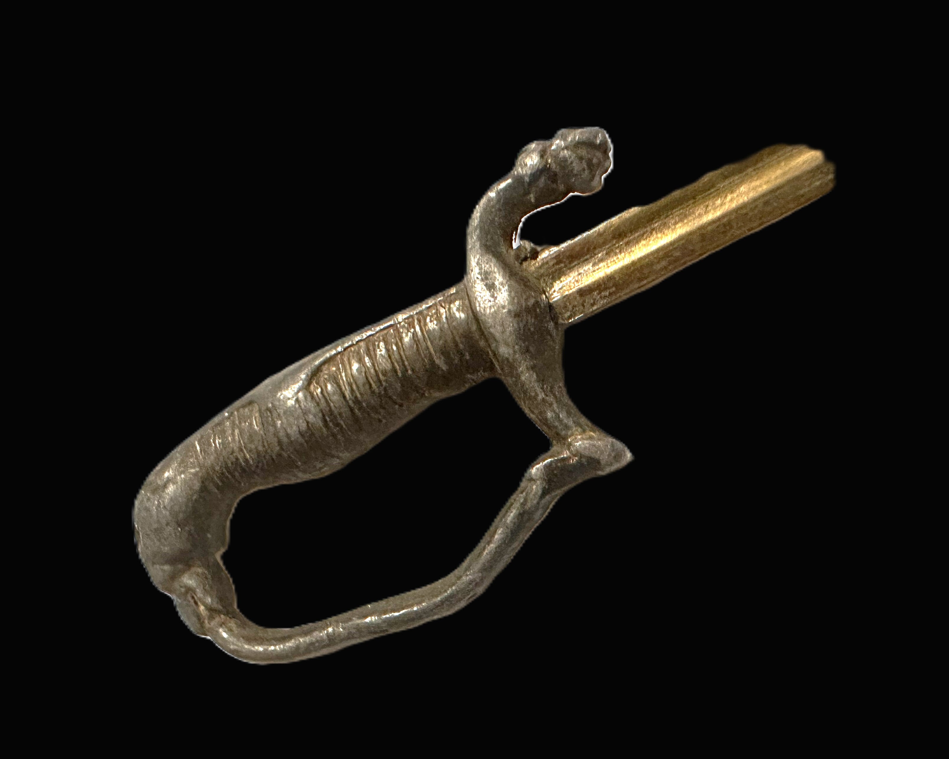 Collectors value these miniatures for their direct stylistic link to edged weapons while remaining an affordable entry point into Imperial-era material culture. Despite being utilitarian objects, they capture the aesthetics of period weapons and were often retained as desk pieces by former officers and noncoms. This example has obvious hand-casting traits, subtle asymmetries, and the soft detail characteristic of small-batch or artisan production rather than factory manufacture.