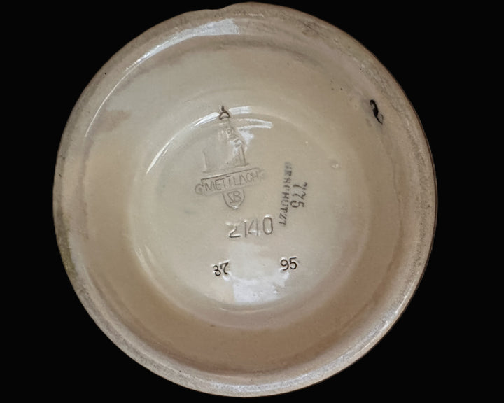 The underside is marked with the impressed Mettlach Abbey and VB shield logo, mold number 2140, and the date 95, confirming production in 1895. Additional incised and impressed marks appear, including form and decorator codes.