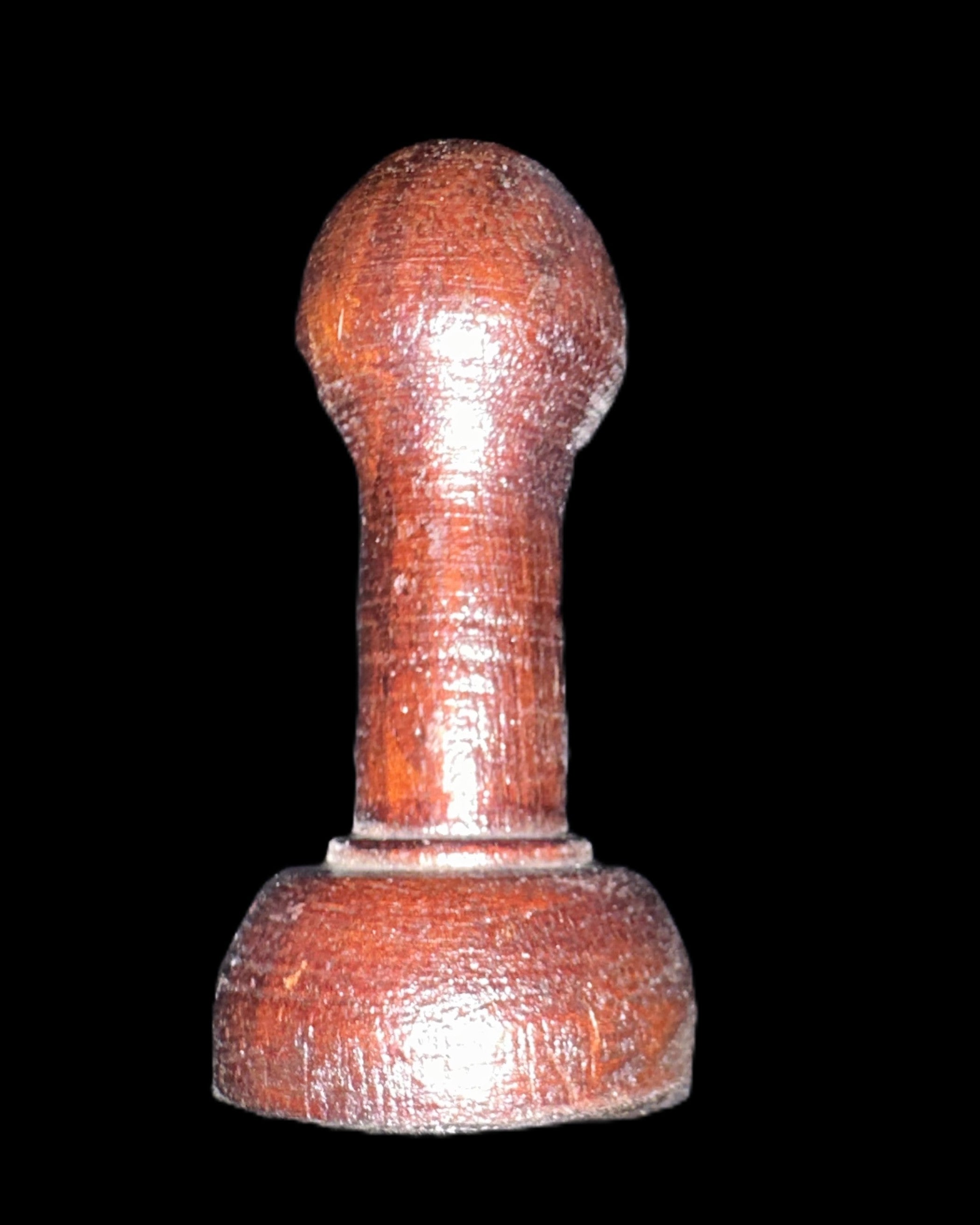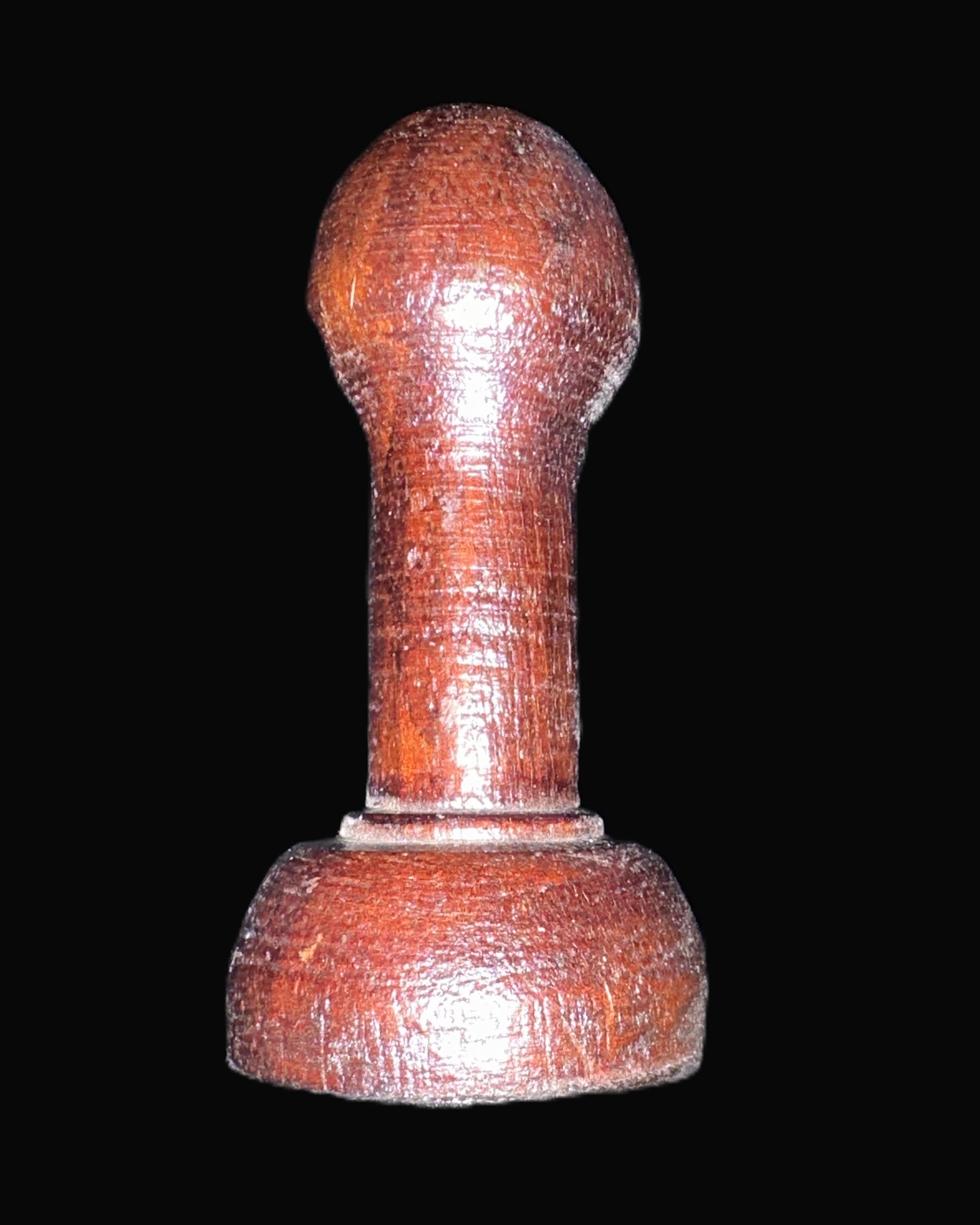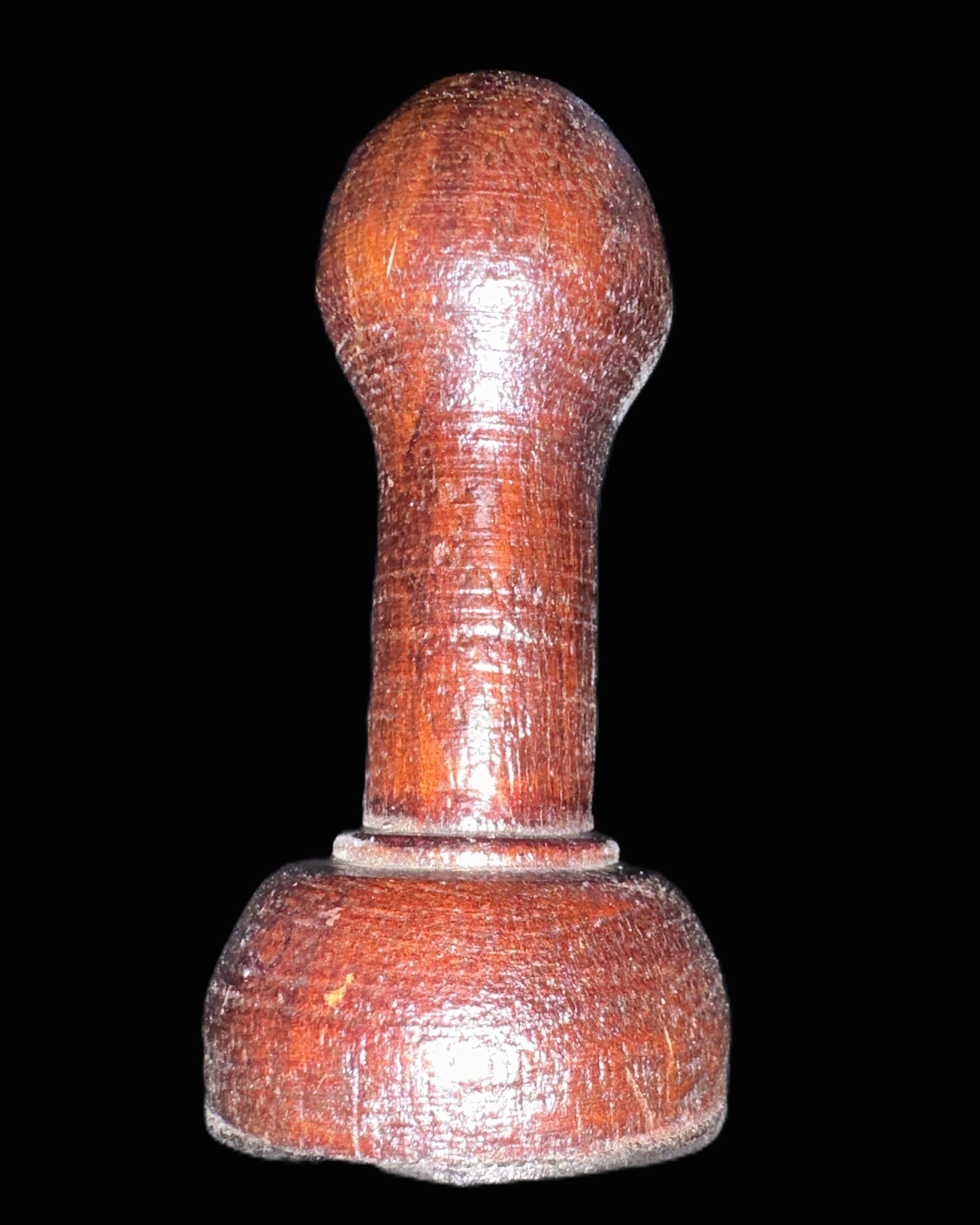 Condition: Very good, showing expected wear to wood surface and light aging to the die. Still capable of producing a crisp impression.