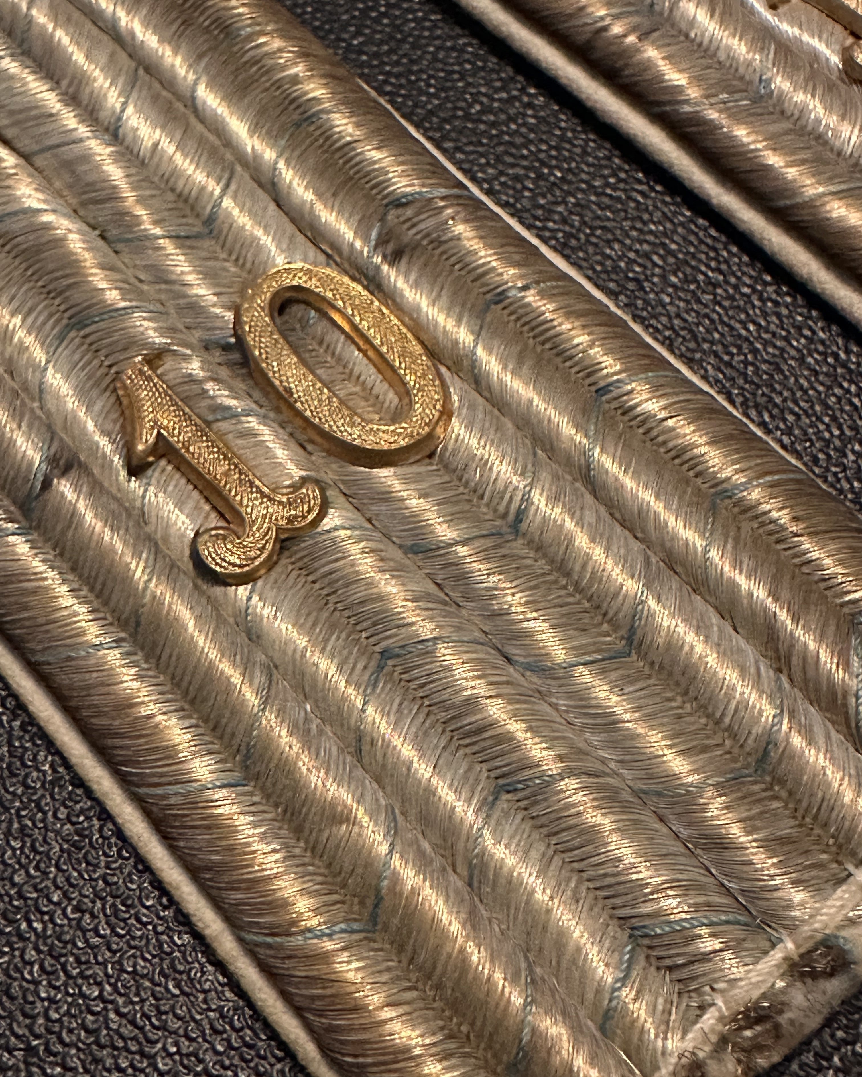 This is a fine matched pair of Bavarian officer’s shoulder boards for a Leutnant of Infanterie-Regiment Nr. 10 “Prinz Ludwig” (10. Infanterie-Regiment Königreich Bayern). Founded in 1726 and headquartered at Ingolstadt, this regiment bore the name of Prince Ludwig of Bavaria and served with distinction throughout the 19th and early 20th centuries, later forming part of the Bavarian III Army Corps during the Great War.