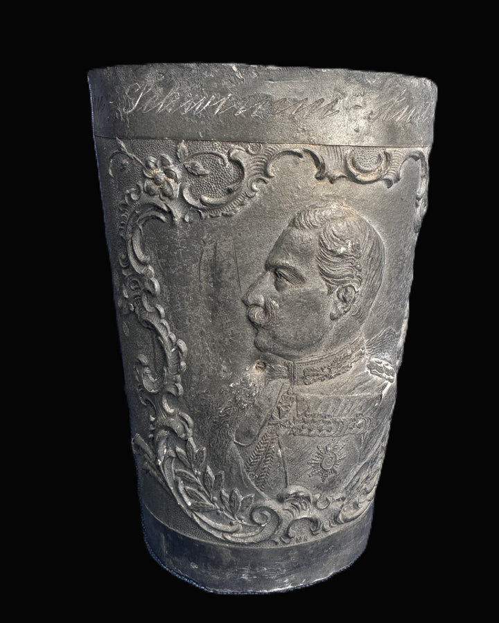 Pewter drinking cup from the Garnison-Schützen Korps, featuring Duke Albrecht of Württemberg, Hanover 1903