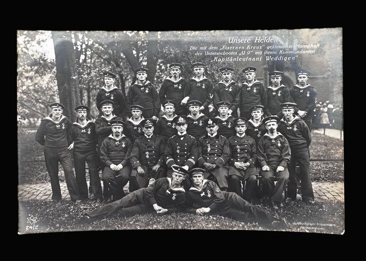 Postcard Photograph of the Crew of German U-9 Submarine with Kapitänleutnant Otto Weddigen – Iron Cross Recipients