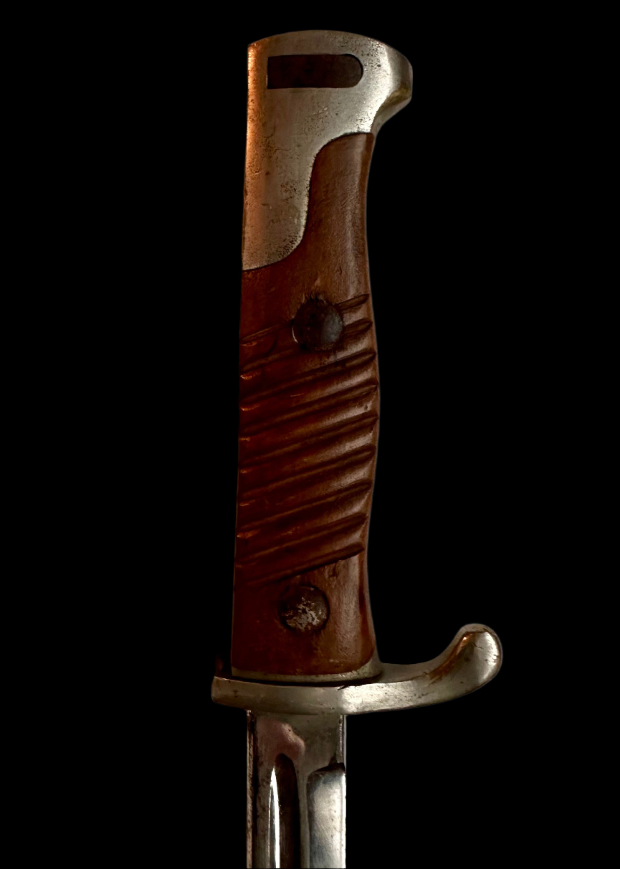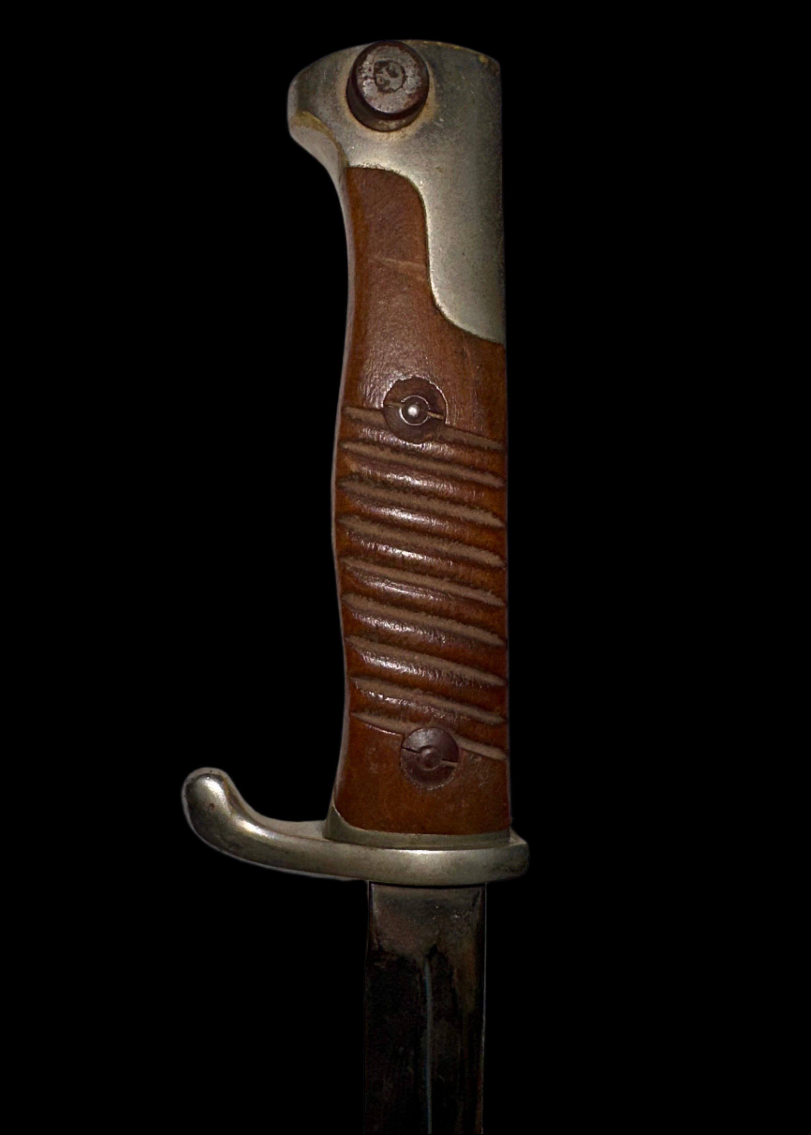 While this bayonet does not bear a regimental unit marking, its form and materials are consistent with early-production Imperial German models.