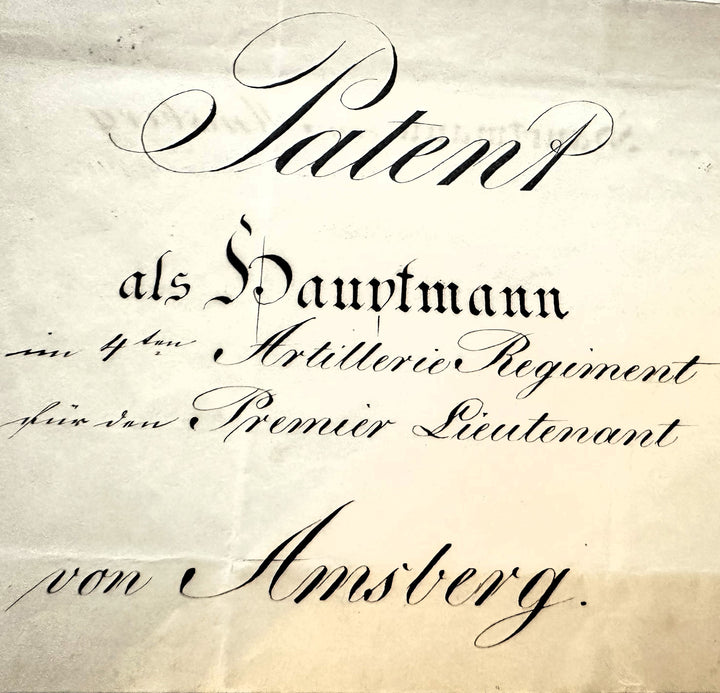 "Patent als Hauptmann im 4ten Artillerie Regiment"