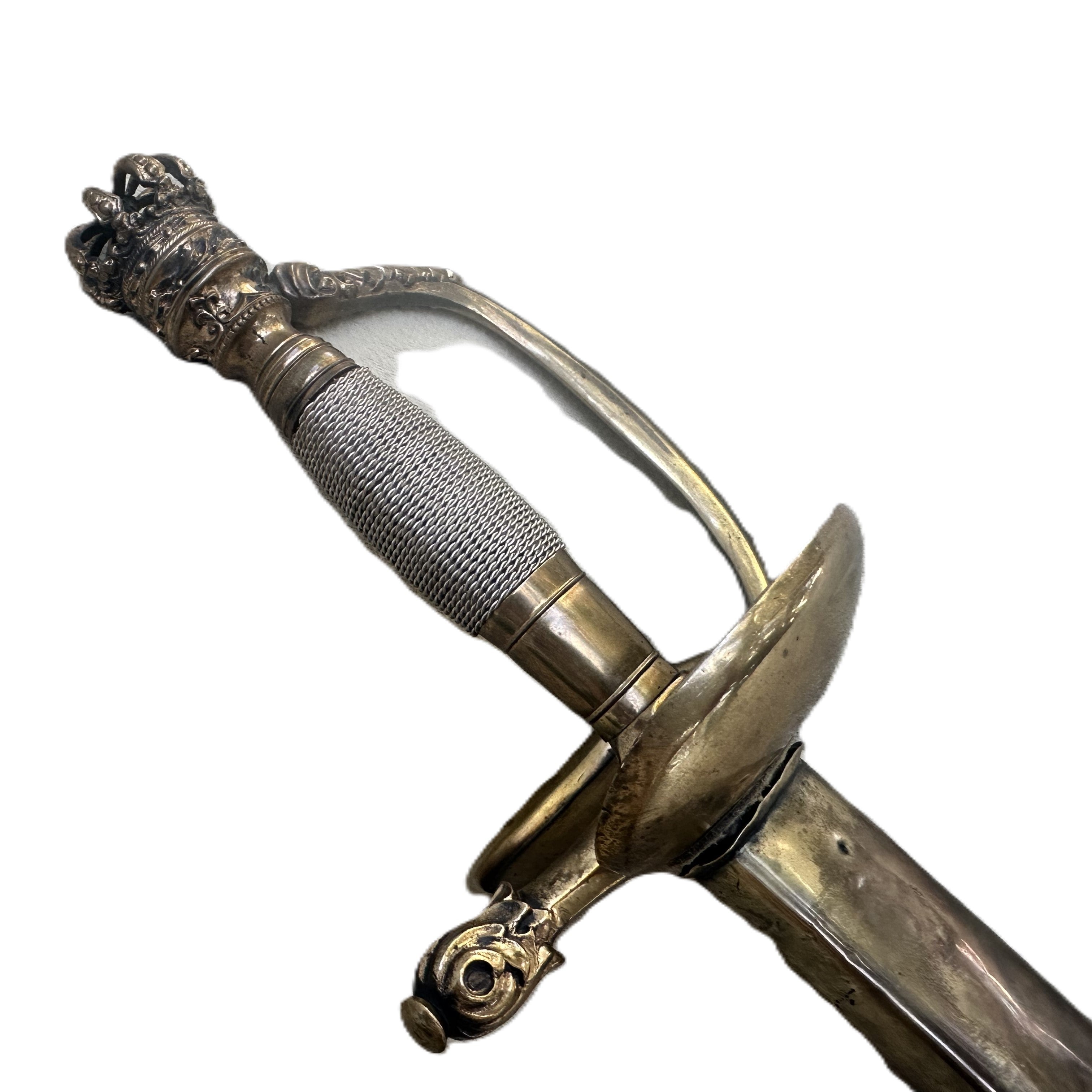 - Hilt: Silver wire-wrapped with a brass pommel featuring a magnificent crown, symbolic of the elite status of the Schloß-Garde-Kompagnie.
