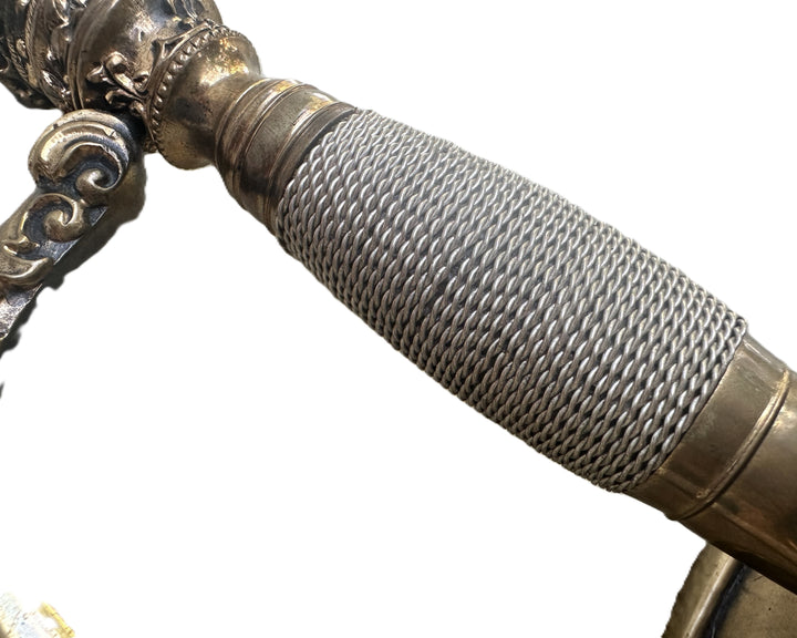 The sword has undergone a meticulous restoration process, breathing new life into this historical artifact while maintaining its authenticity. The restoration was performed by a master craftsman renowned for his expertise in antique military collectibles, particularly in swords and pickelhauben. The craftsmanship is so precise that even seasoned collectors might not discern the restoration work, perceiving it as the sword’s original condition.