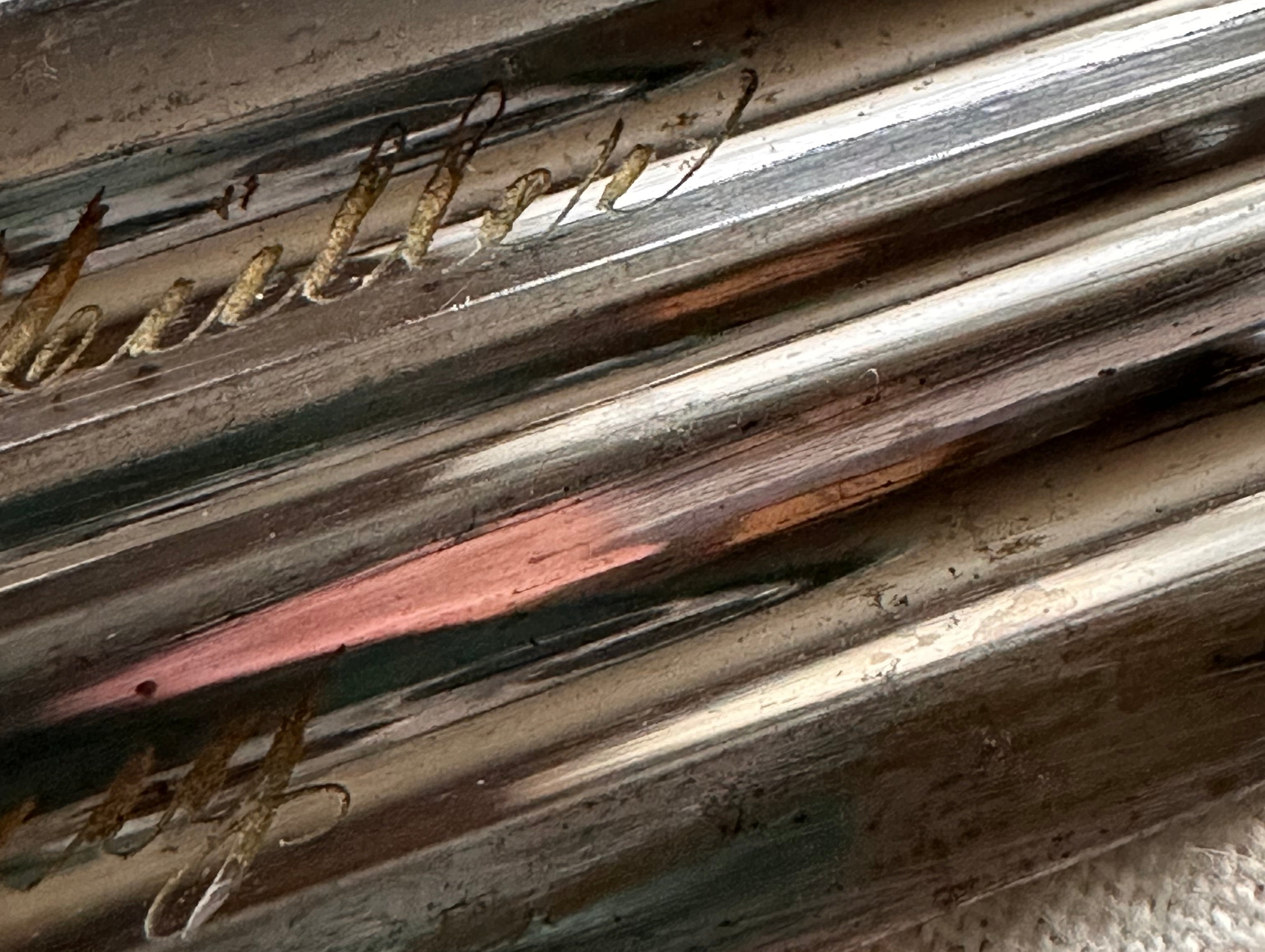 Very good overall. Brass guard shows pleasing aged patina, grip is complete with wire binding firm and intact. Blade surface is bright with some age toning, fuller lines remain sharp. Scabbard shows oxidation but is solid with no structural issues. An excellent representative example of a Saxon officer’s regulation sidearm, ready for advanced display.