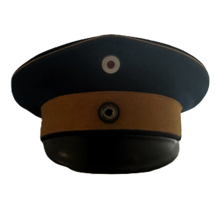 This schirmütze is in very good condition considering its age. The exterior wool is vibrant with no significant moth damage, which is rare for caps of this period. The interior shows signs of use, but this is typical for a cap over 100 years old. The stitching around the leather band remains intact, and the visor is in excellent condition with a glossy finish.