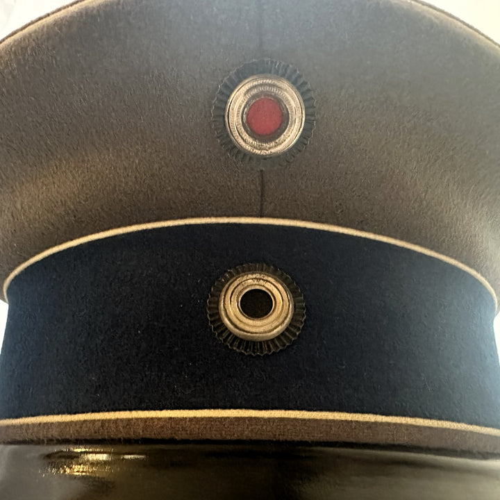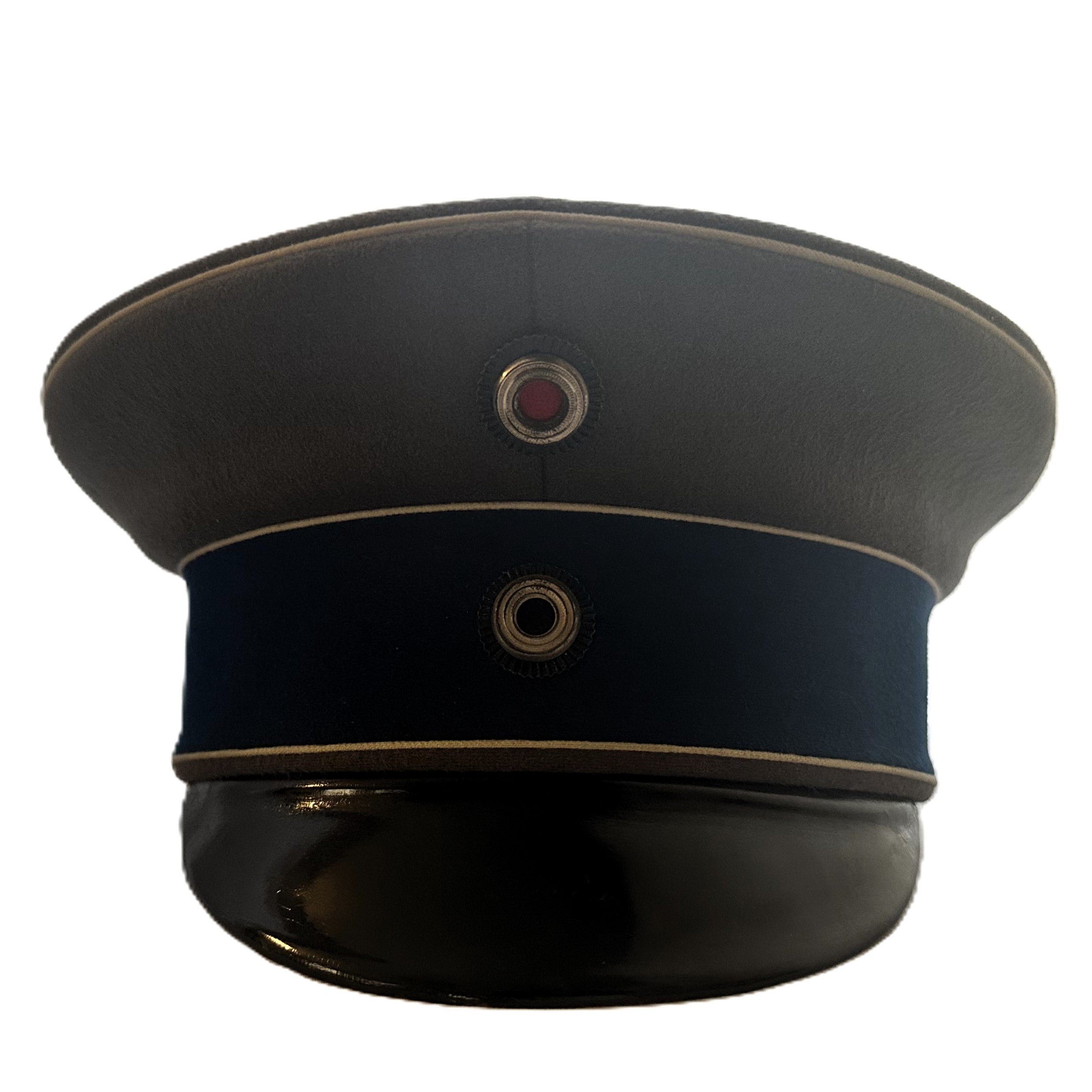 Prussian Officer’s Schirmütze – Garde-Kürassier Regiment – Feldgrau with Blue Stripe and White Piping