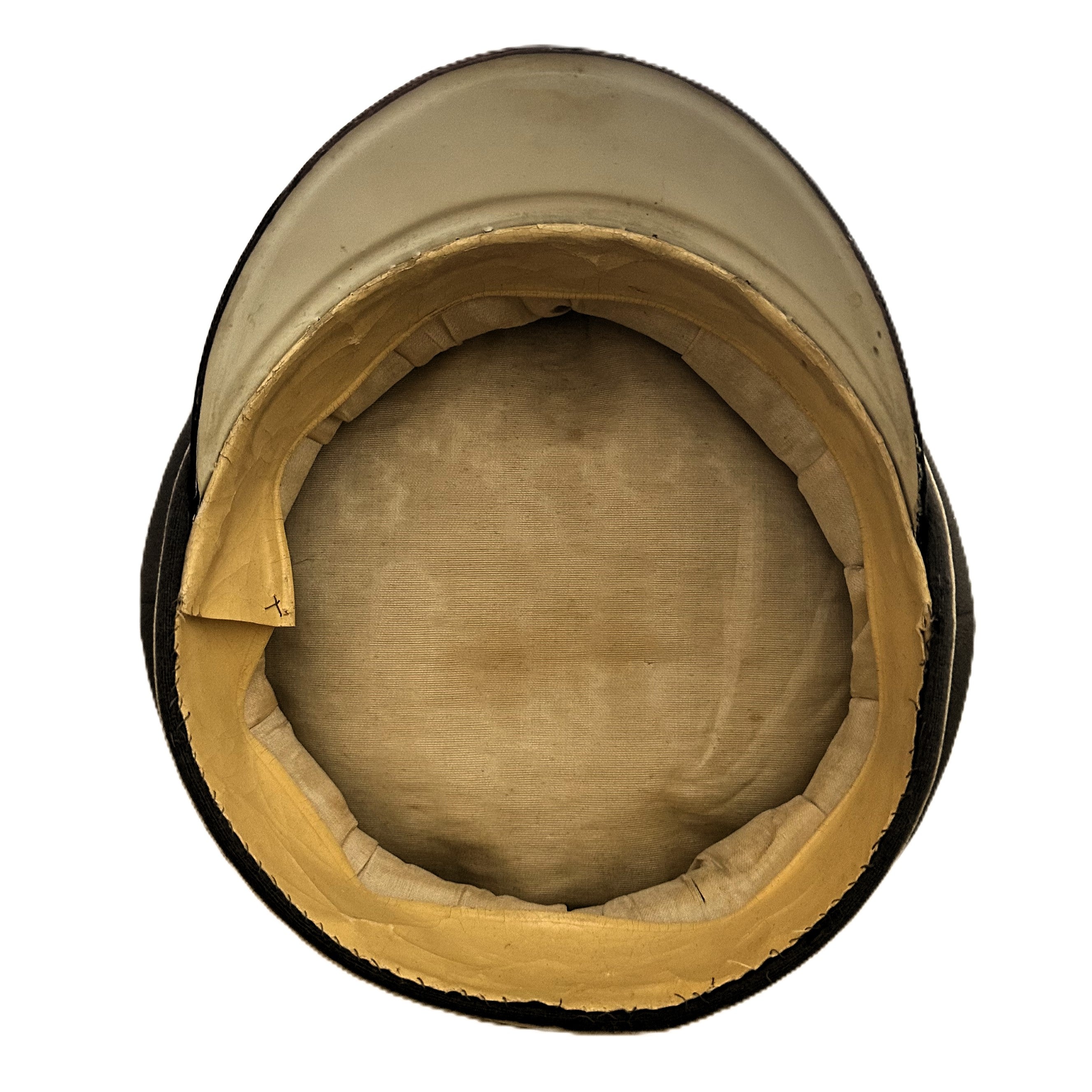 Interior: Inside, the cap features a well-preserved leather sweatband and a silk liner, both in commendable condition. The liner shows some light staining consistent with age, but it remains intact and free of significant damage. The overall integrity of the cap’s interior speaks to the care it has received over the years.