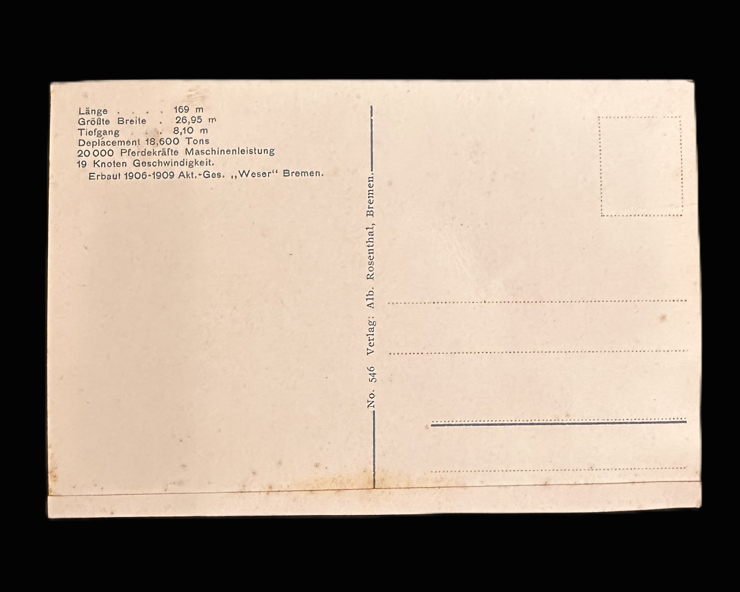 For collectors, the pairing of a named ship tally with a period postcard of the same vessel creates a cohesive and highly displayable grouping that directly connects the material culture of the sailor with the visual identity of the ship itself. Such combinations are increasingly difficult to assemble organically and are strongly sought after within Imperial German naval collecting.