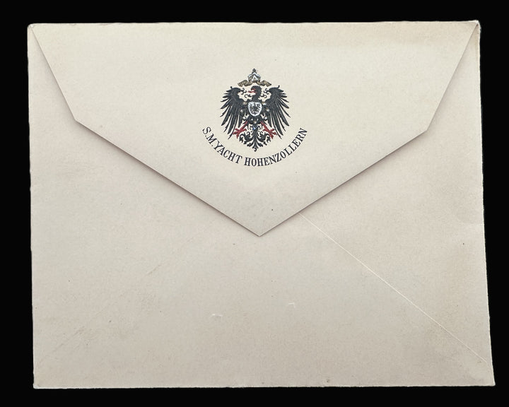This exquisite envelope originates from the famed S.M. Yacht Hohenzollern, the Imperial German yacht that served as both a symbol of power and a private vessel for Kaiser Wilhelm II. Designed with precision and elegance befitting its imperial association, this stationery represents a unique relic of German maritime and royal history.