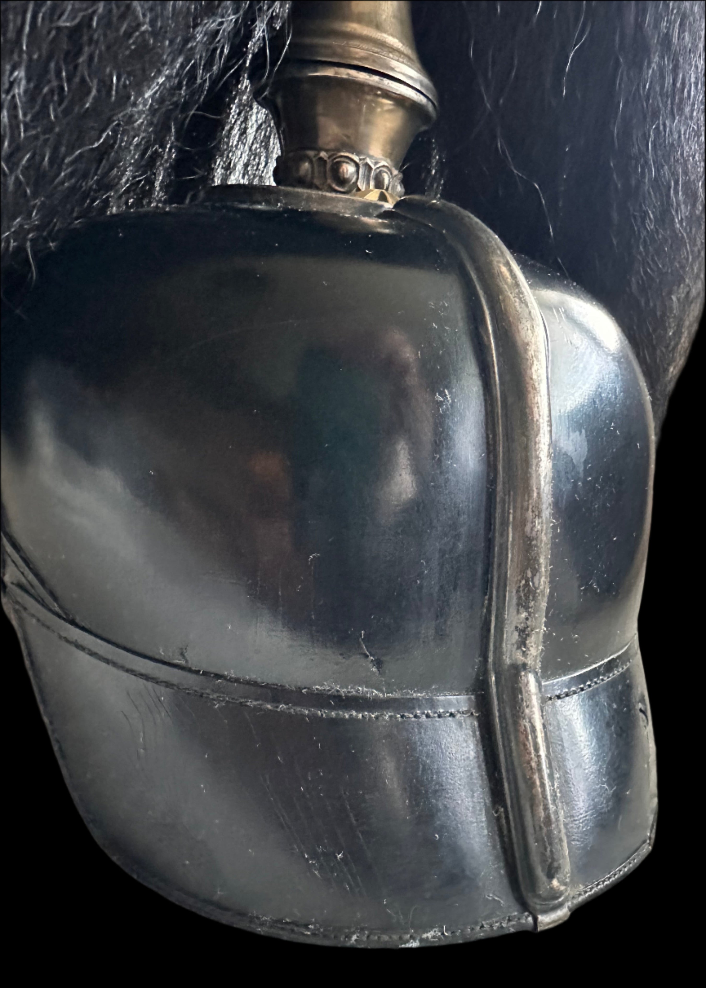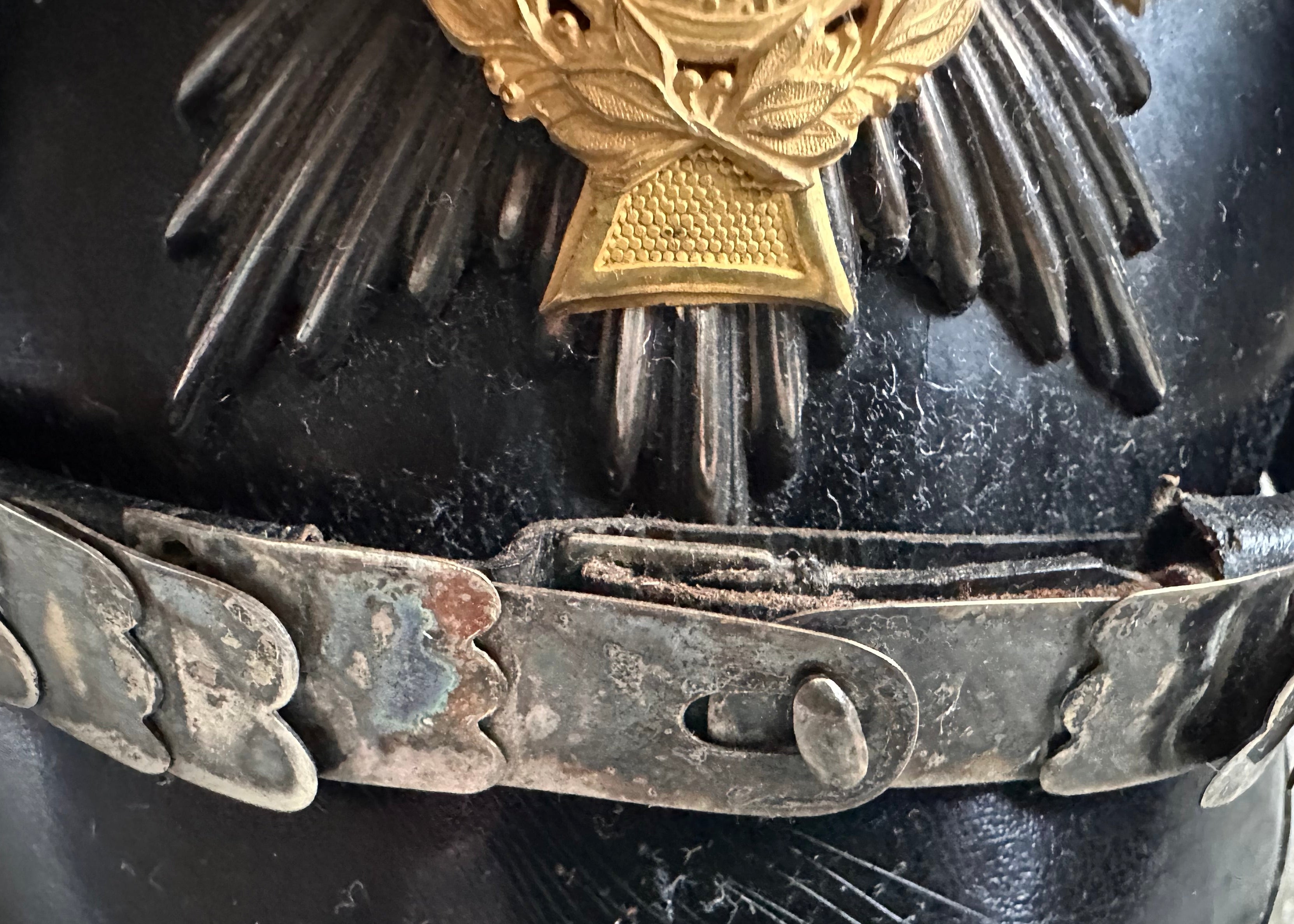 This helmet combines outstanding craftsmanship with a highly specific regimental identity. Its complete parade configuration, reserve officer distinction, and one-unit attribution set it far apart from more commonly encountered officer helmets.