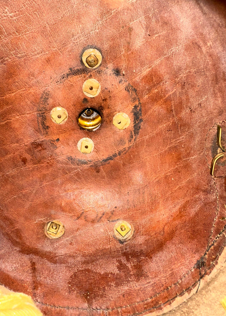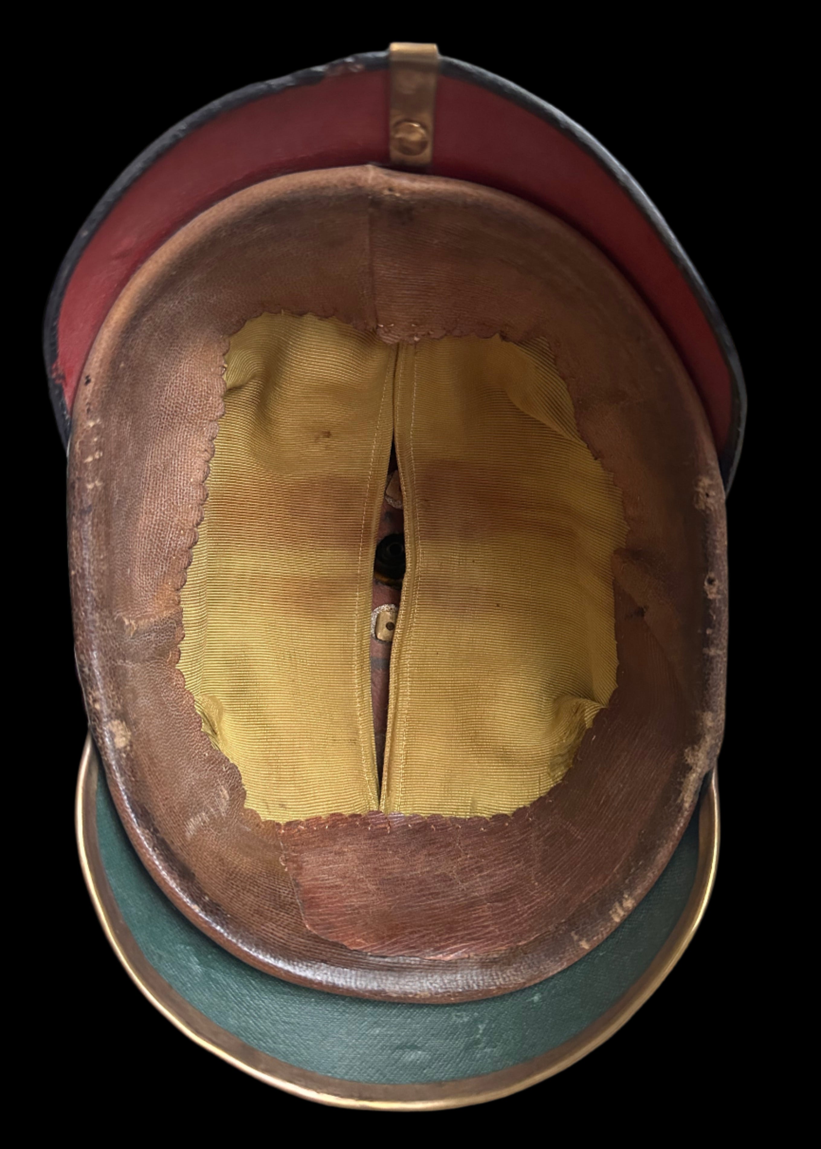 Sweatband: Officer-grade medium brown calfskin, supple and unbroken