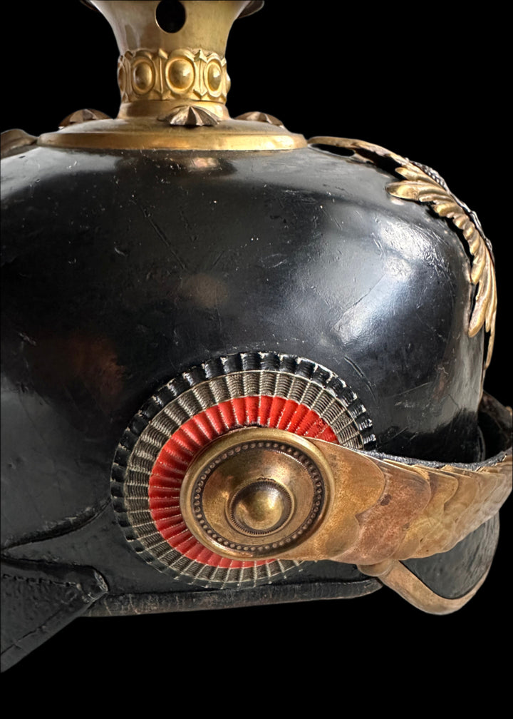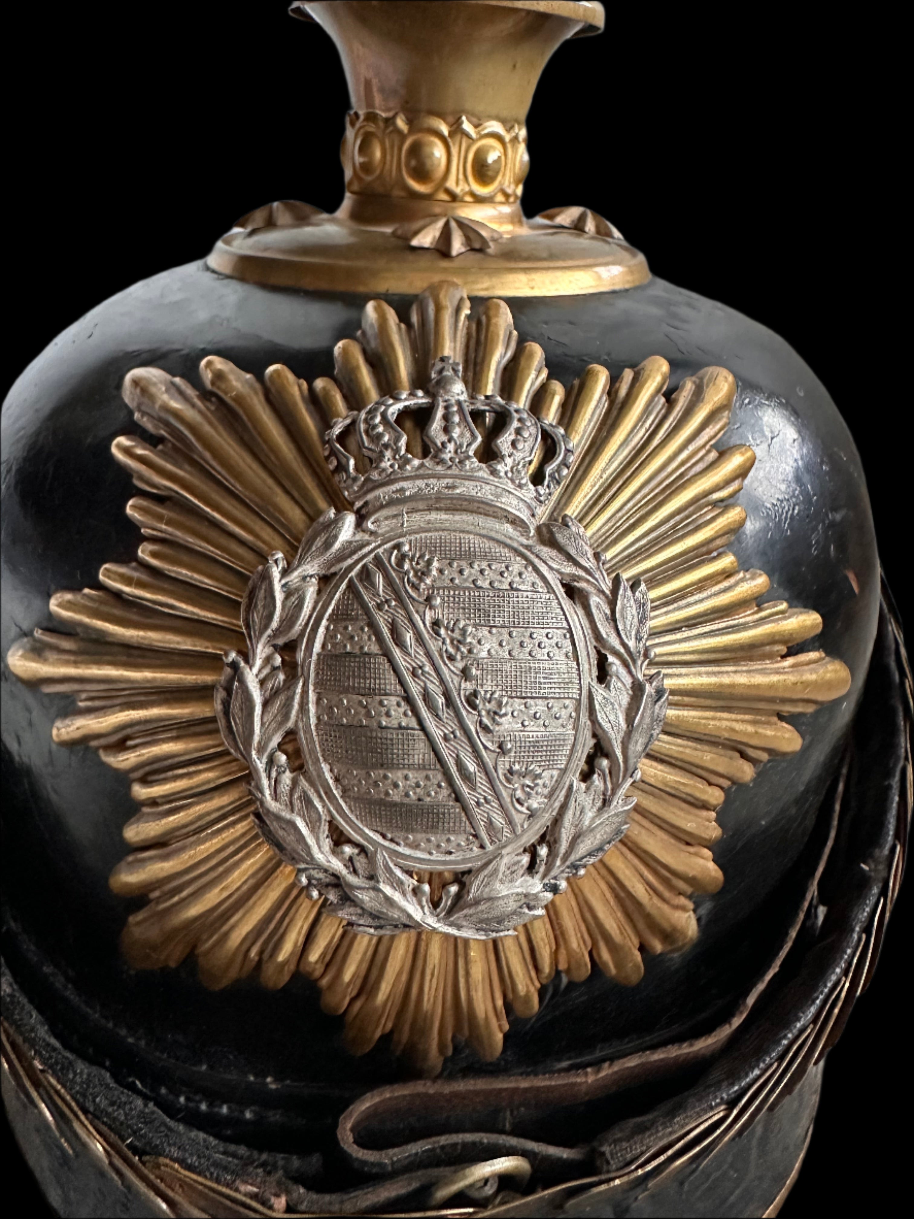 Saxon line infantry officer pickelhaube with gilt and silver starburst Wappen