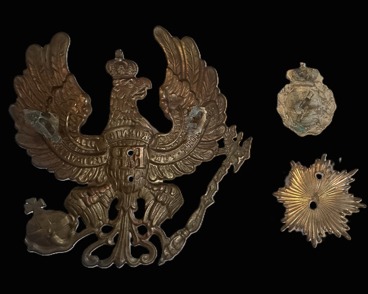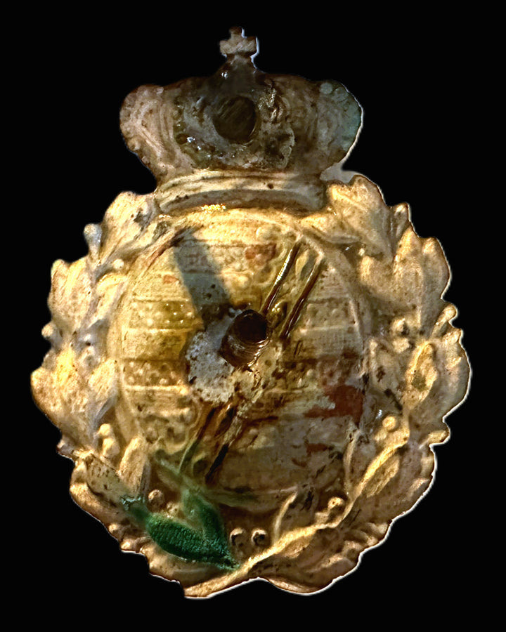 These Saxon Wappen were used on officer helmets from the late 19th century through World War I and are far scarcer than their Prussian or Bavarian counterparts.