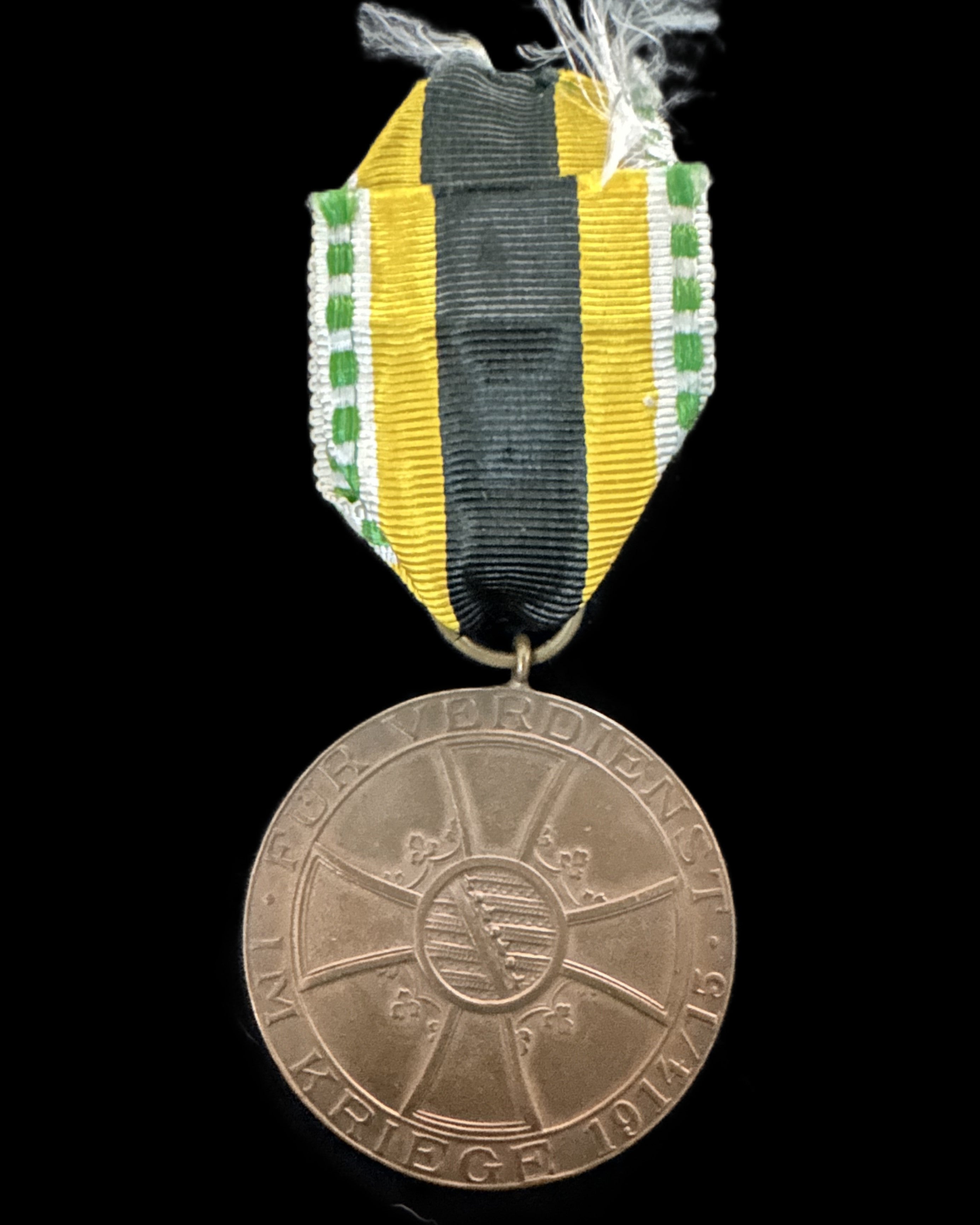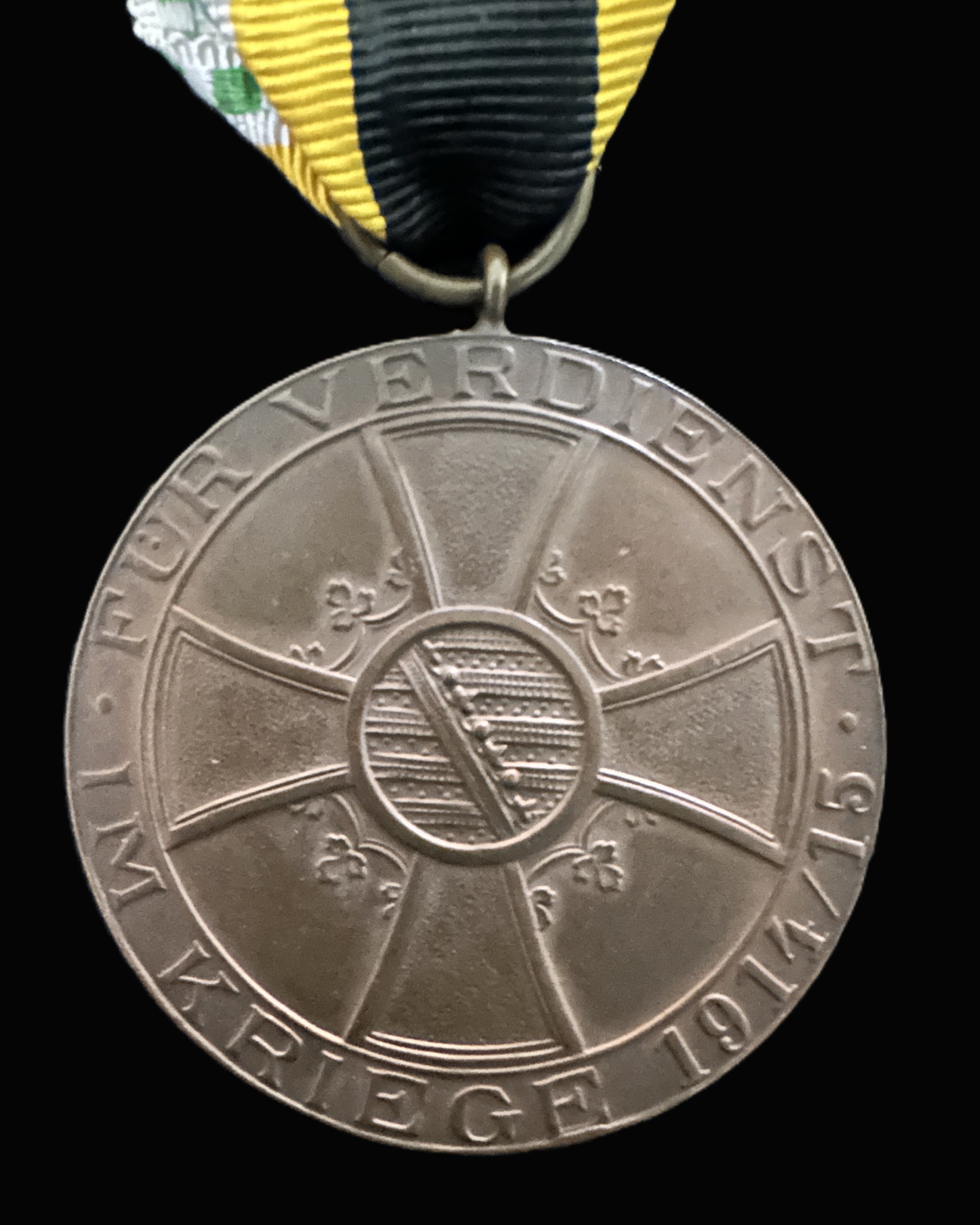 Reverse: Displays the Saxon arms within a cross, encircled by the inscription “Für Verdienst im Kriege 1914/15” (“For Merit in War 1914/15”).