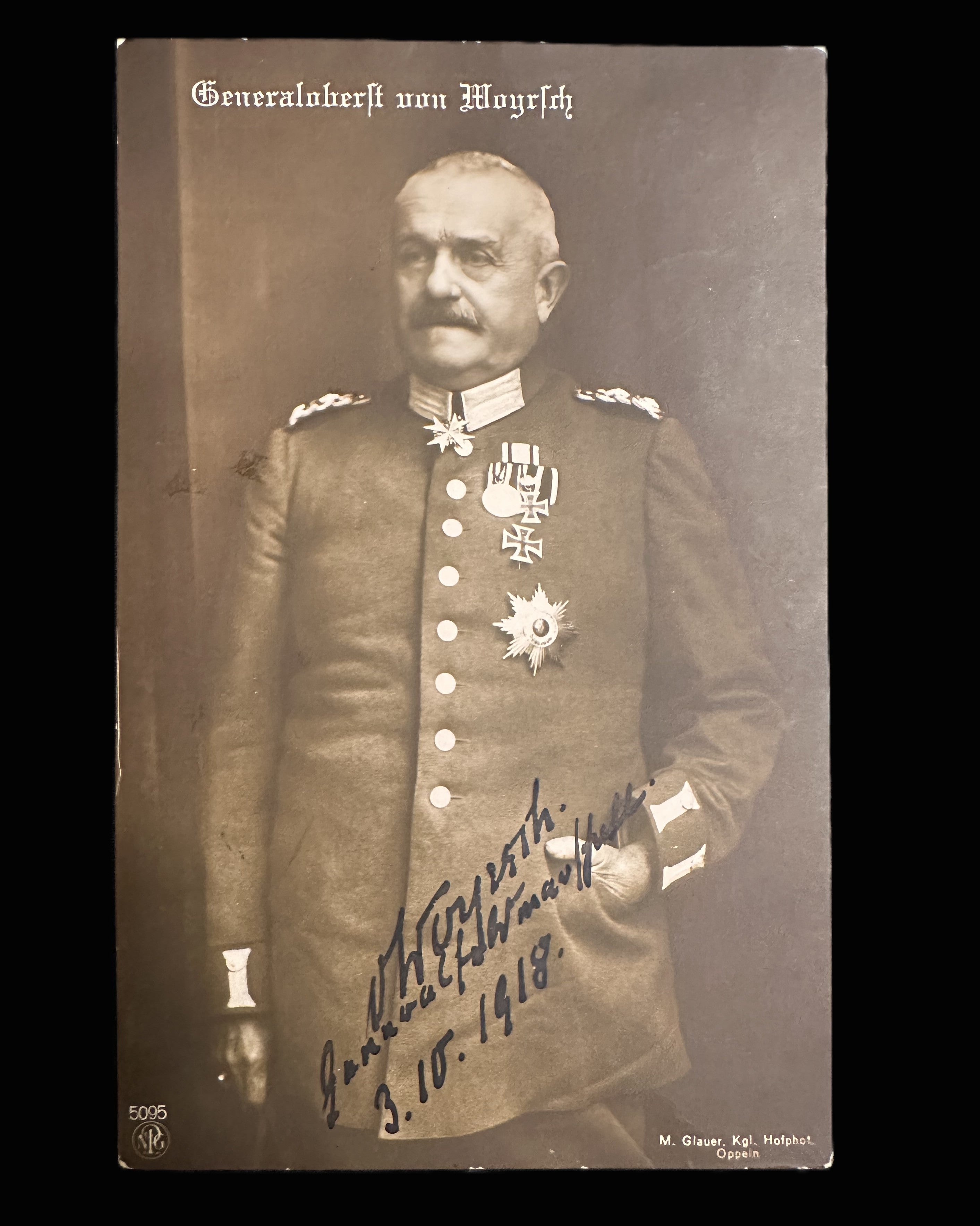 Autographed Imperial German Postcard of Generaloberst von Moysich, Dated October 1918