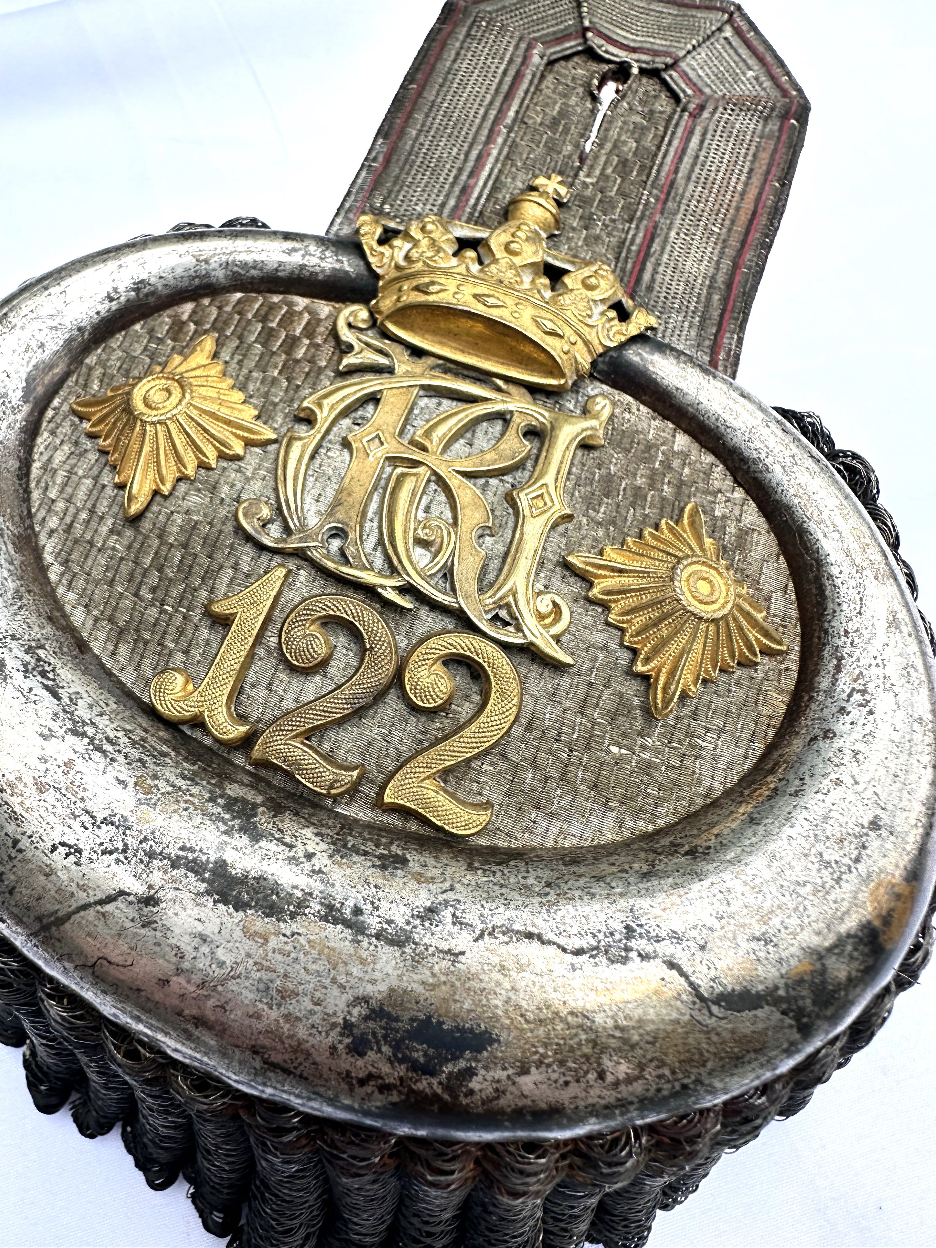 - Regimental Pride: The epaulet proudly displays the number "122" in gilt, reflecting its regimental affiliation.