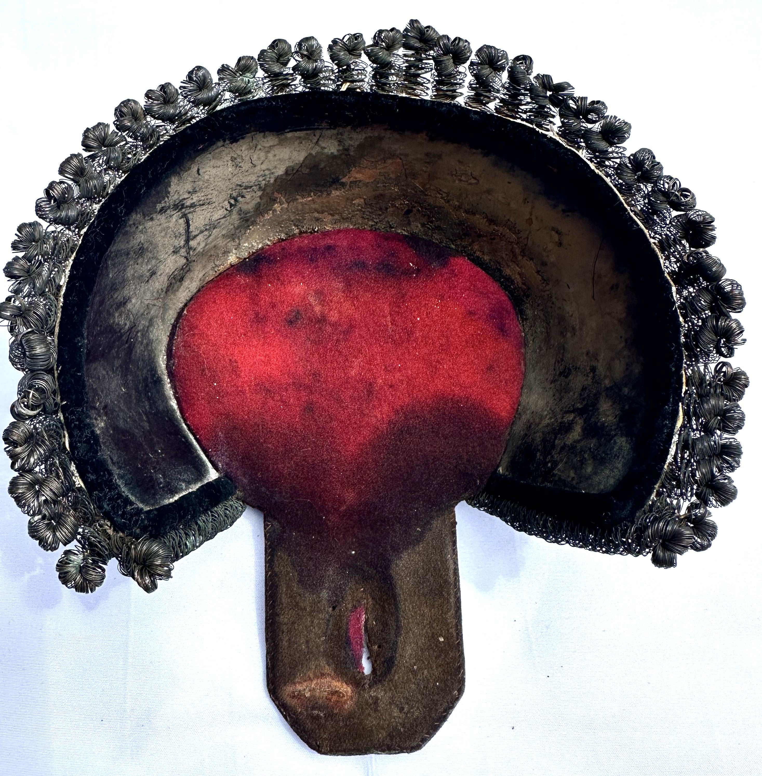 - Condition Notes: Despite some wear, such as ringlets pulling away (not visible from the top), a small moth nip, and some staining likely from water damage, the piece remains a remarkable collector's item with its red felt lining intact.
