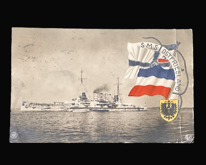 SMS OSTFRIESLAND POSTCARD – IMPERIAL GERMAN NAVY – MAILED TO CHICAGO, USA