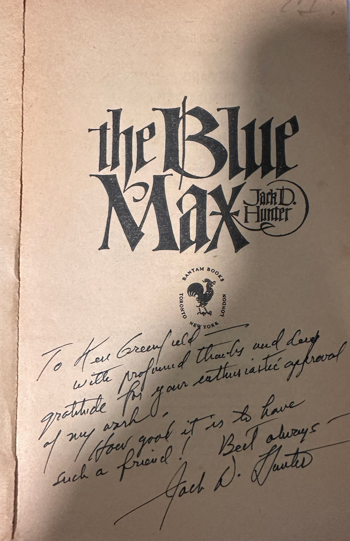 The Blue Max – Signed by Jack D. Hunter to Ken Greenfield