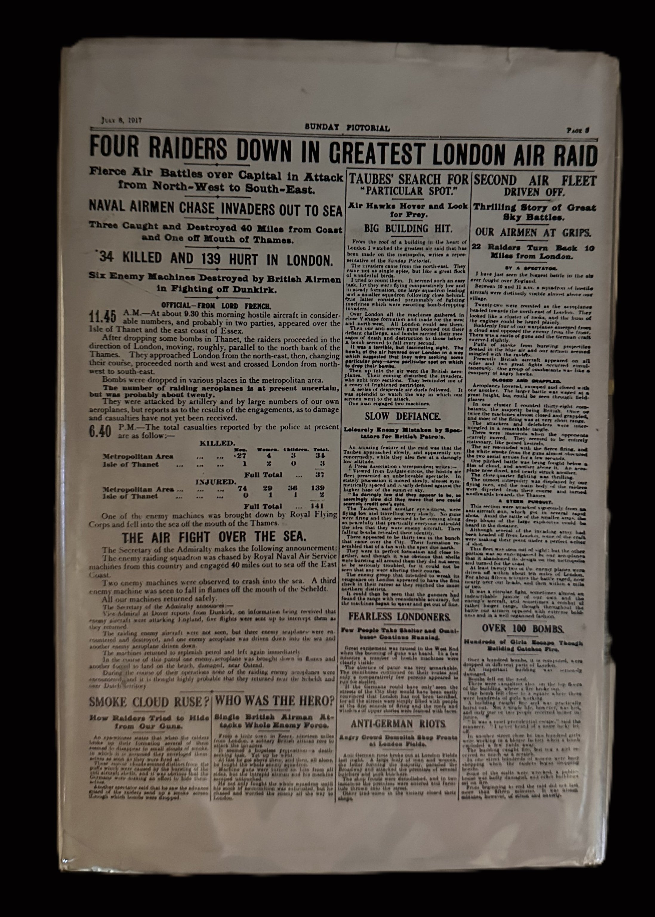 Includes vintage photographs, maps, and contemporary newspaper reprints such as the dramatic “Sunday Pictorial” front page from July 8, 1917.