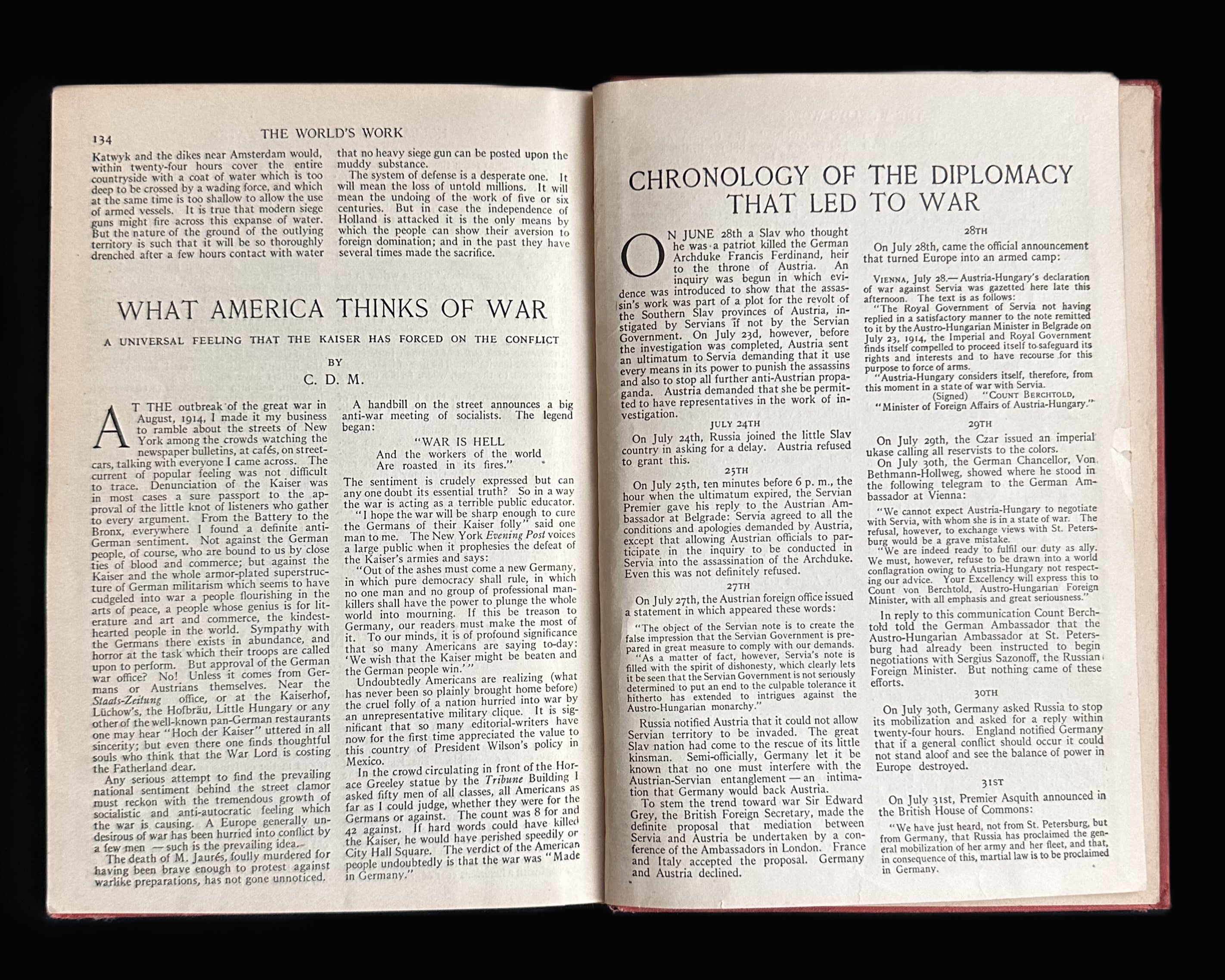 Historically, this volume is a significant artifact of early American engagement with the First World War. Published before U.S. entry into the conflict, it reflects contemporary understanding, biases, and interpretations at a moment when the war’s outcome was far from certain. As such, it is an important primary-source reference for collectors of WWI-era publications, military historians, and those studying wartime media and public opinion.