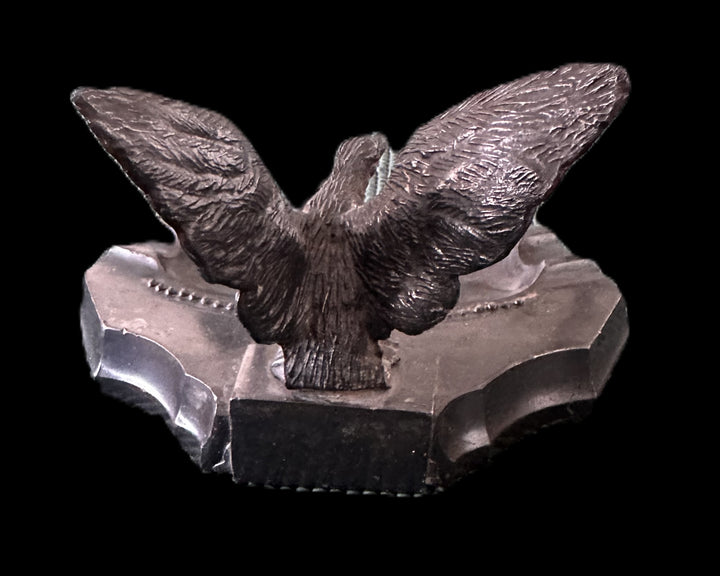 This piece likely dates from the WWI era through the 1920s–1930s and could have served either as an officer’s personal desk item or as a commemorative or patriotic home accessory in Imperial or Weimar Germany. While not explicitly marked, its style and construction are consistent with German-made militaria or souvenir items of the period. The reverse side shows wear typical of early 20th-century casting with a simple screw affixing the eagle to the base.