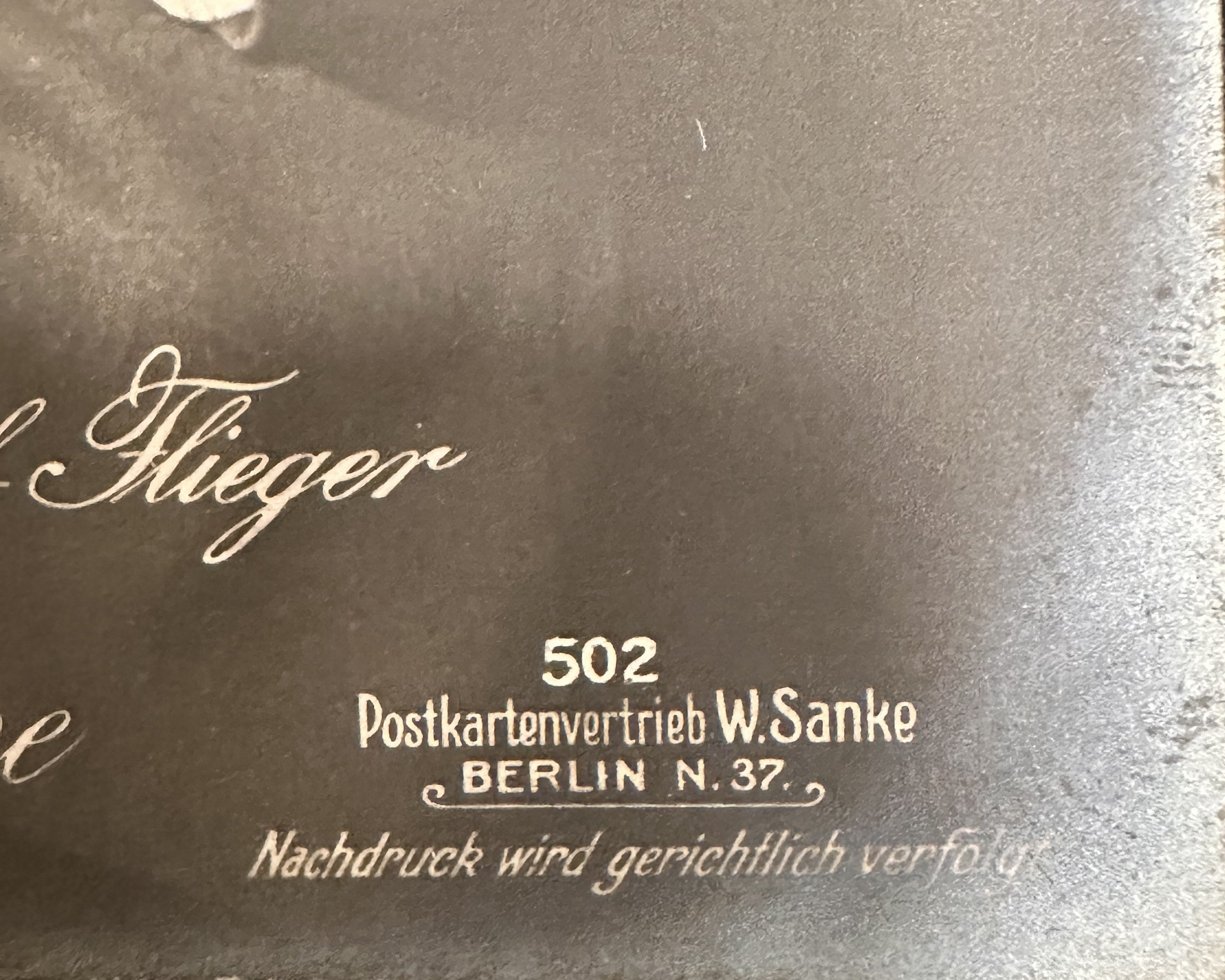 W. Sanke of Berlin was one of the key commercial engines behind this visual culture. The Sanke postcard series functioned as a curated gallery of the Imperial officer corps, naval leaders, U-boat men, and—most importantly for today’s market—aviation personalities. Sanke images were collected, traded, pasted into albums, and mailed as patriotic greetings. Their numbering system and standardized imprint allow modern collectors to authenticate period production quickly, while the specific caption subjects determine scarcity and desirability. Even when a figure is less universally recognized today than the top-tier names, the presence of the Pour le Mérite and aviation insignia keeps the card squarely within the high-demand segment of WWI German air service ephemera.