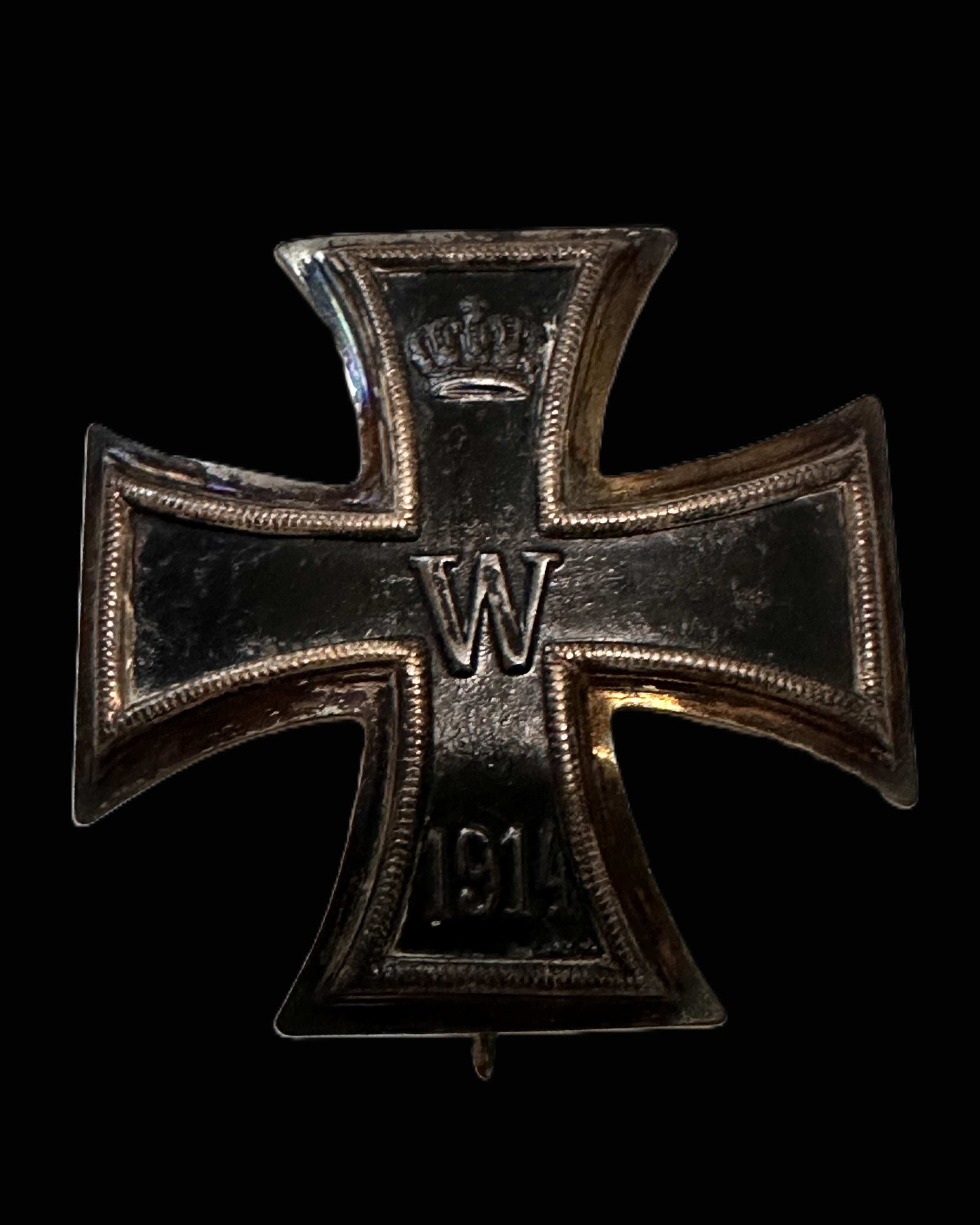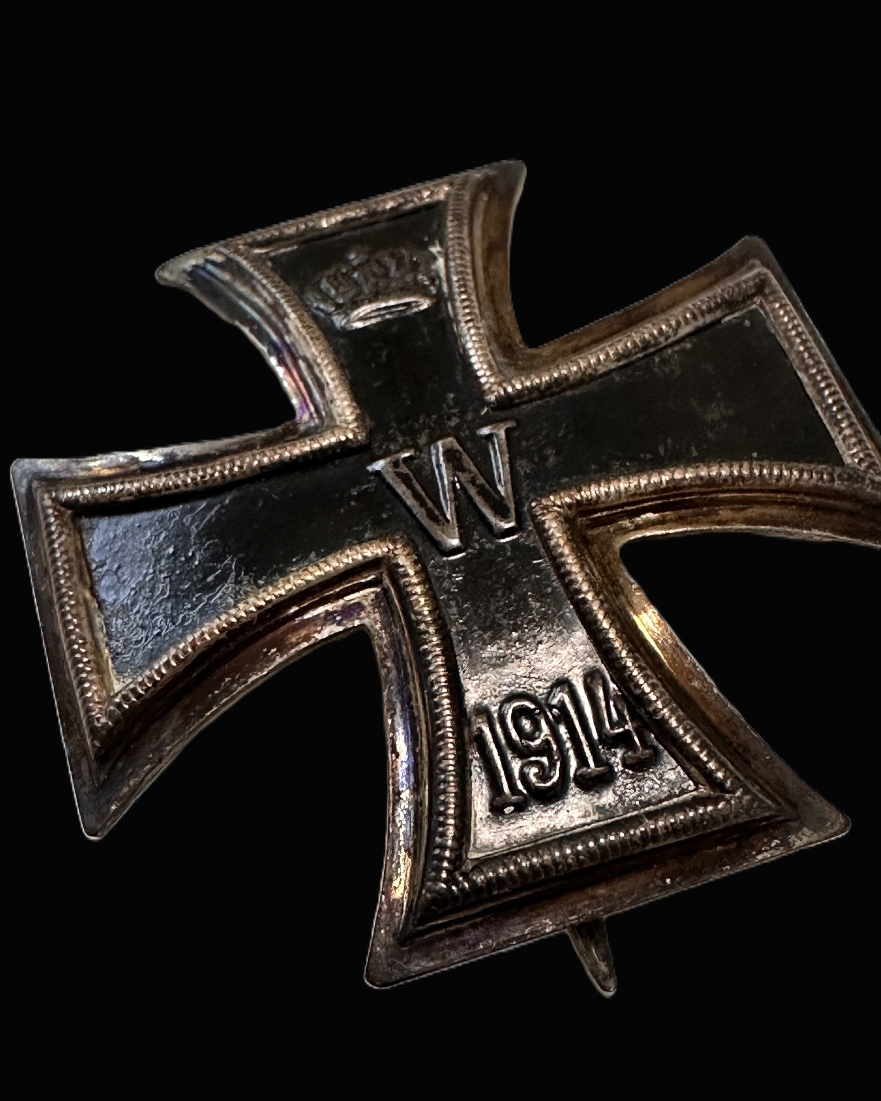 Historically, the Iron Cross is one of the most enduring combat decorations in European military tradition. The award was originally revived by King Friedrich Wilhelm III of Prussia in 1813 during the Wars of Liberation against Napoleon, intentionally designed as a stark, egalitarian symbol: black iron set within a contrasting border, emphasizing duty and sacrifice rather than jeweled luxury. That design language—severe, instantly recognizable, and unmistakably Prussian—was carried forward into later revivals. When the Great War began in 1914, Kaiser Wilhelm II reauthorized the Iron Cross, and it quickly became the defining German award of the conflict, spanning all arms and ranks. The 1914 date on the lower arm marks the wartime reissue, while the “W” cipher identifies the reigning monarch in whose name the award was granted, tying each piece directly to the Wilhelmine period at its apex and, ultimately, its collapse.
