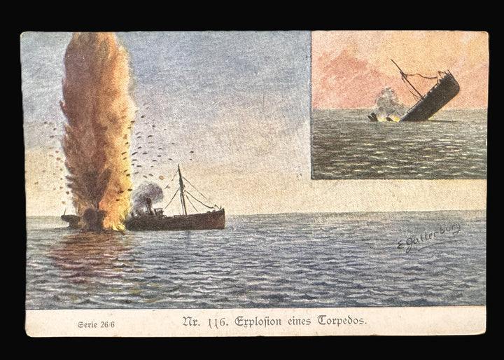 WWI Austrian Postcard Depicting Torpedo Explosion – Gloria Viktoria Series Nr. 116