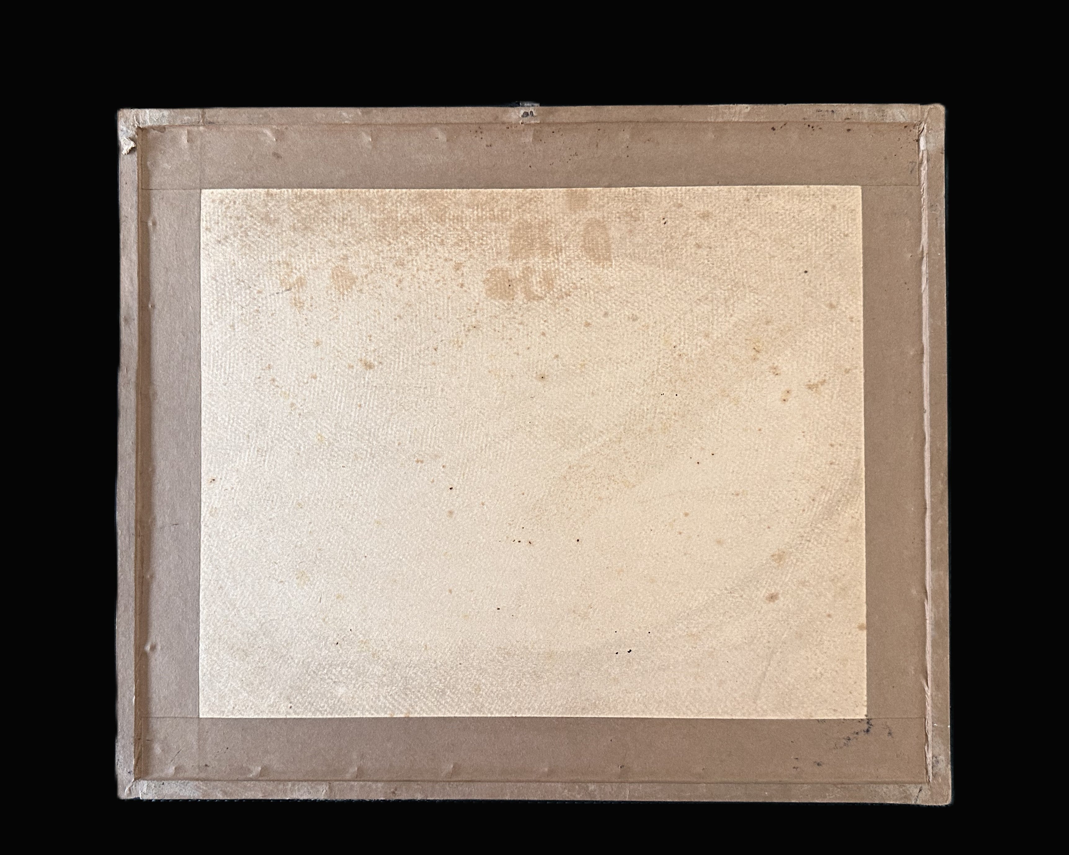 The back of the frame remains sealed with period-appropriate materials, showing signs of age and light wear but no significant damage.