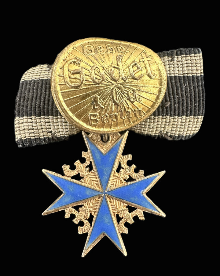 The Pour le Mérite was introduced by Frederick the Great in 1740 and continued to be awarded until the end of the German Empire in 1918. It symbolizes a period of military tradition and Imperial German excellence. Miniature versions such as this were worn on civilian attire for formal occasions, reflecting the recipient's esteemed status.