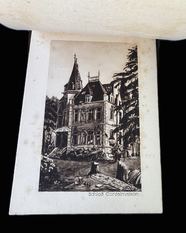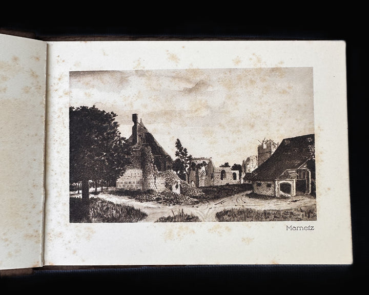 These types of albums were either distributed to soldiers or purchased as commemorative keepsakes. The included ruins such as Mametz and Conflansmaison are symbolic of the areas along the Somme and Aisne where brutal engagements occurred in 1914–15.